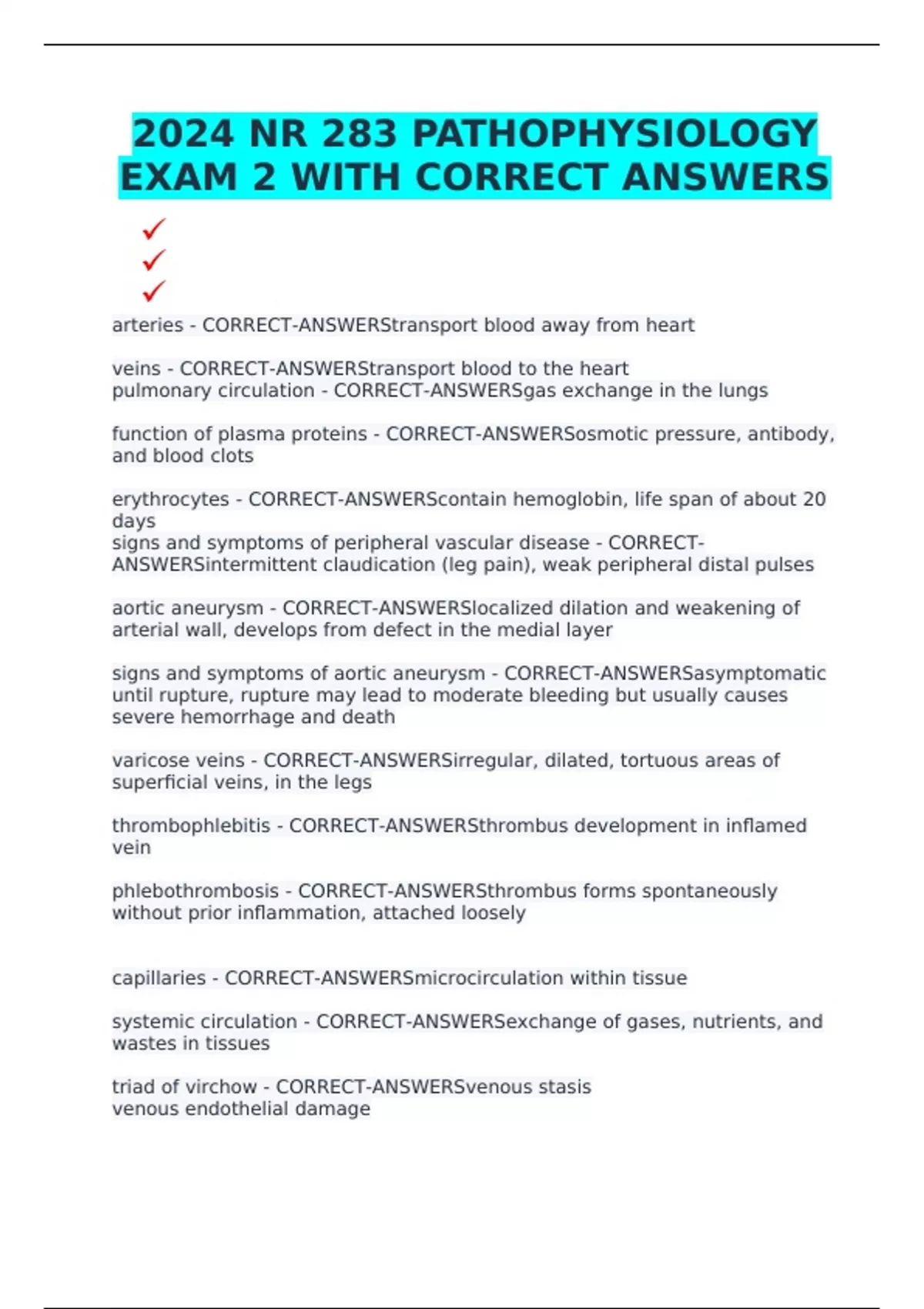 arteries - CORRECT-ANSWERStransport blood away from heart