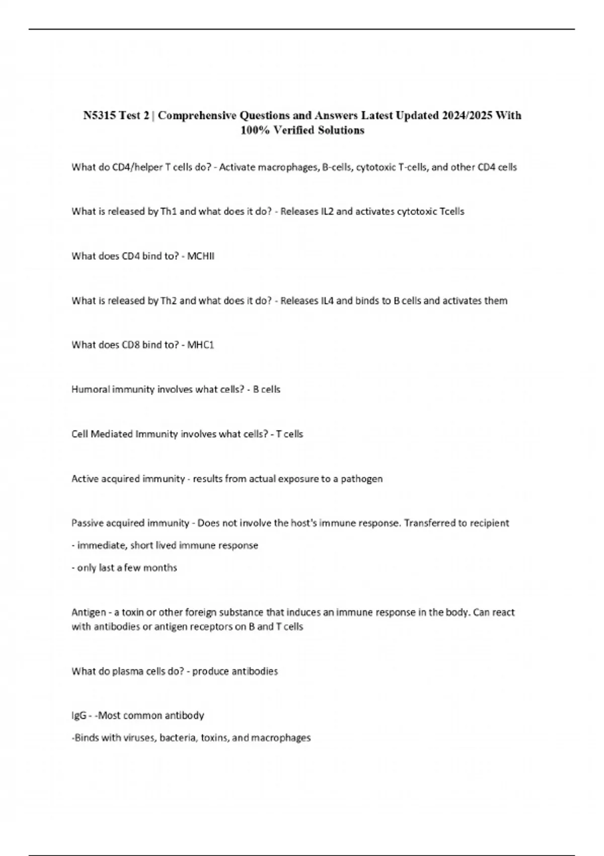 N5315 Test 2 | Comprehensive Questions and Answers Latest Updated 2024/2025 With 100% Verified Solutions