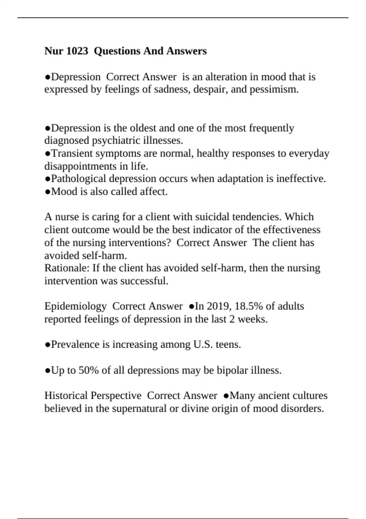 ●Depression Correct Answer is an alteration in mood that is