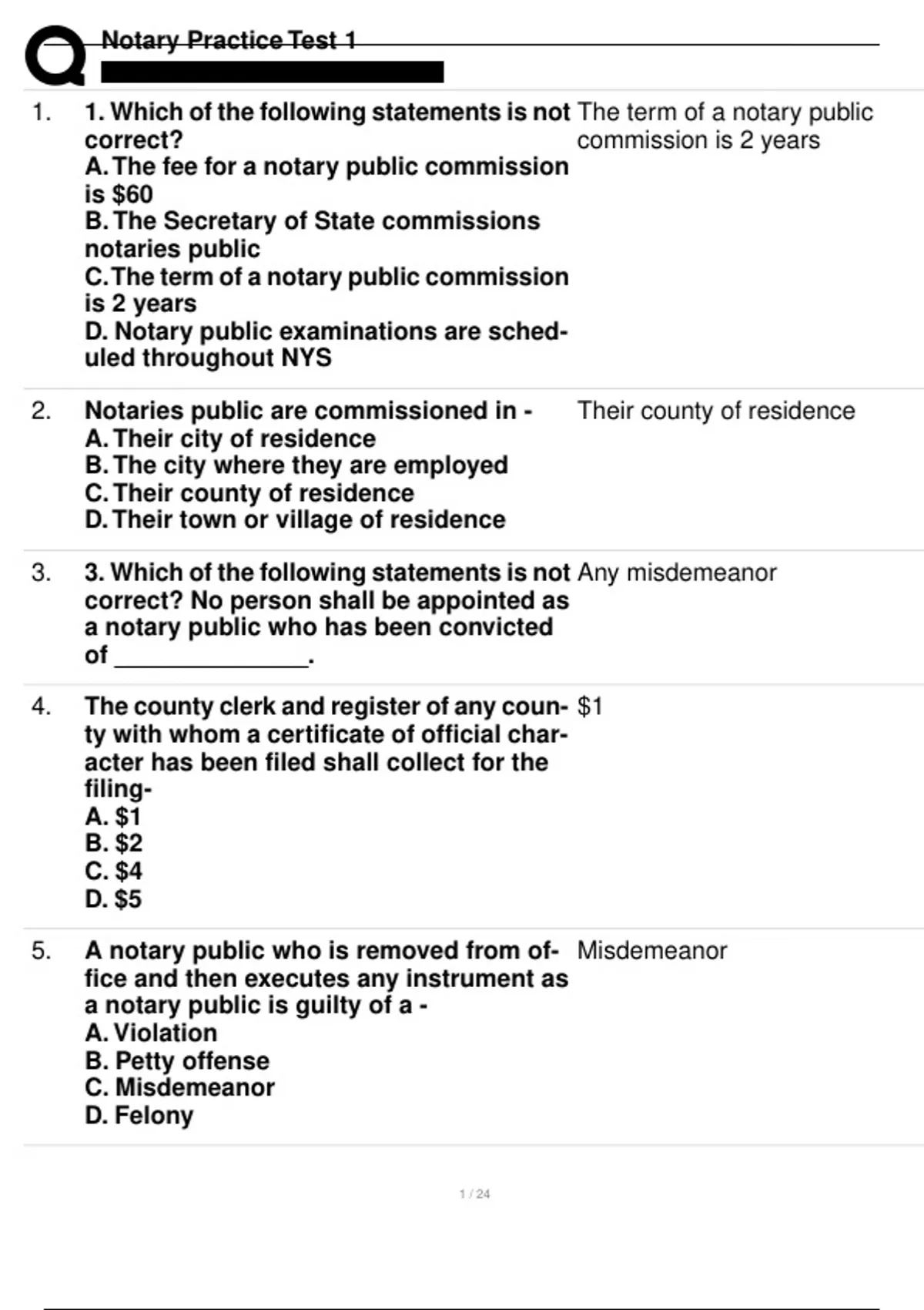 1. 1. Which of the following statements is not The term of a notary public