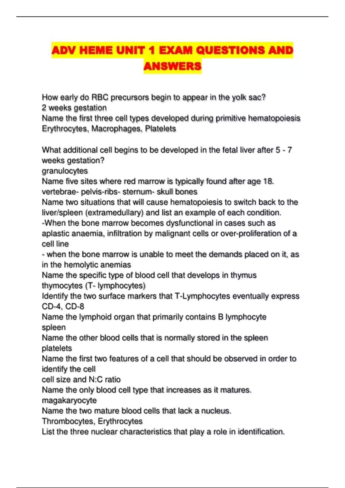 ADV HEME UNIT 1 EXAM QUESTIONS AND