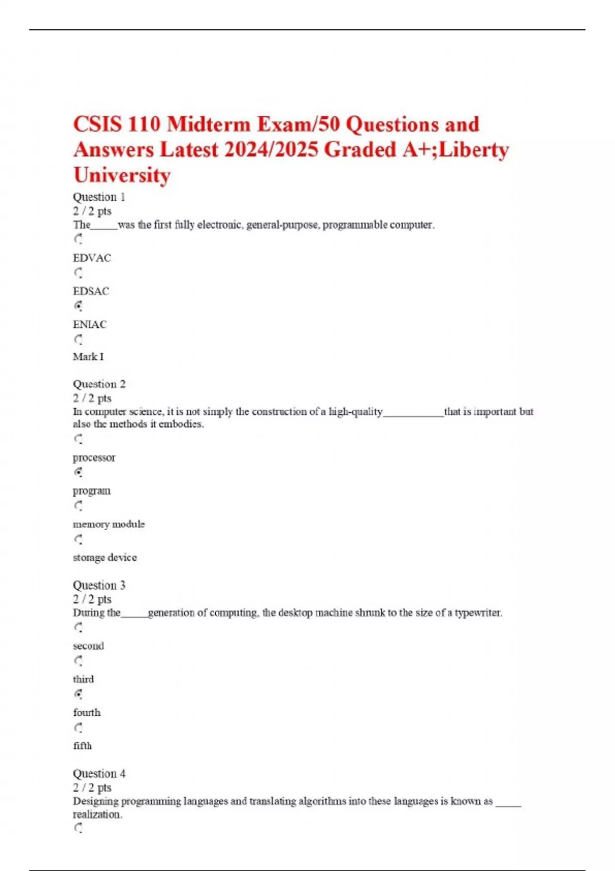 CSIS 110 Midterm Exam/50 Questions and Answers Latest 2024/2025 Graded A+;Liberty University CSIS 110 Midterm Exam/50 Questions and Answers Latest 2024/2025 Graded A+;Liberty University