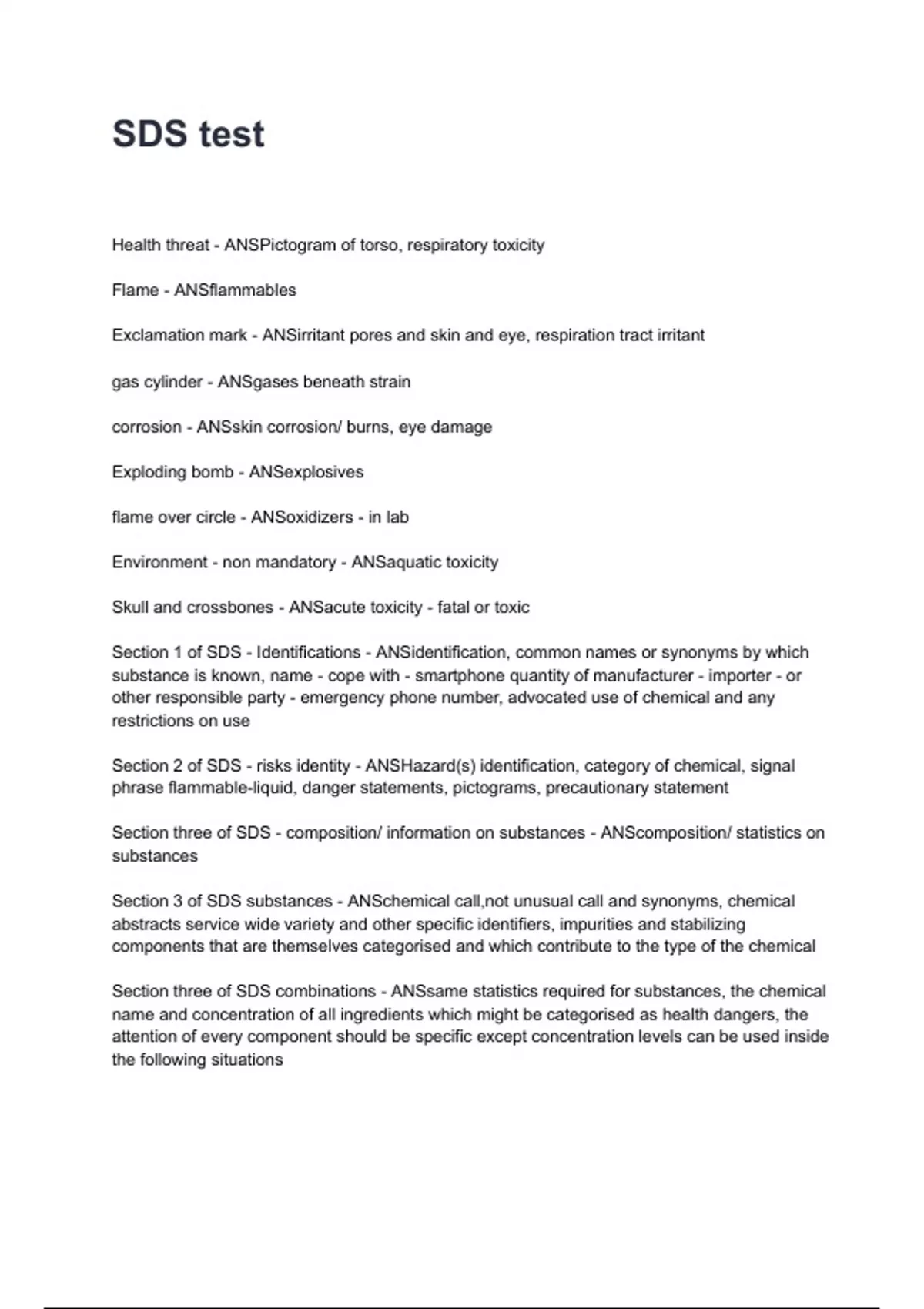 Section three of SDS combinations - ANSsame statistics required for substances, the chemical