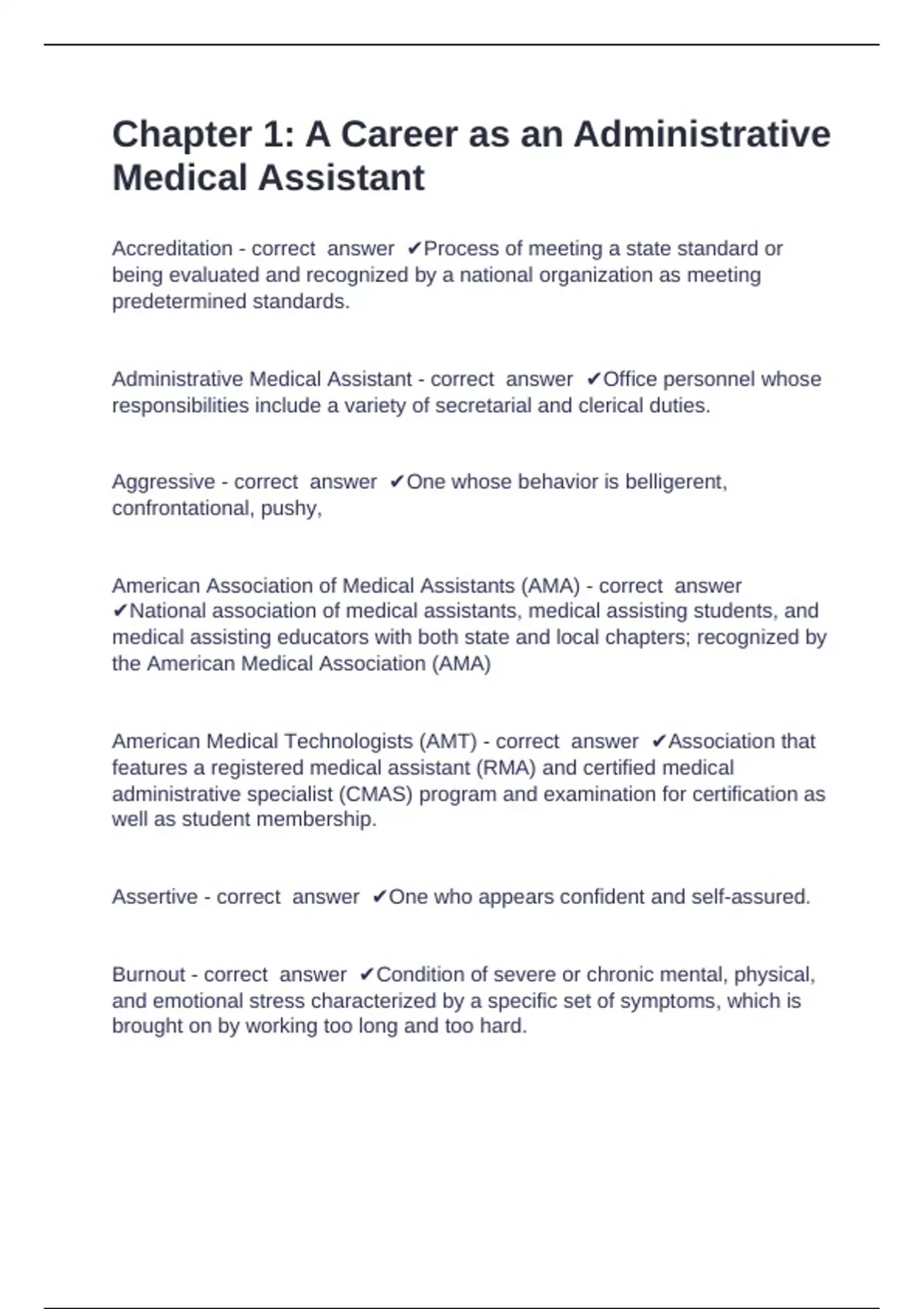 Administrative Medical Assistant - correct answer ✔Office personnel whose