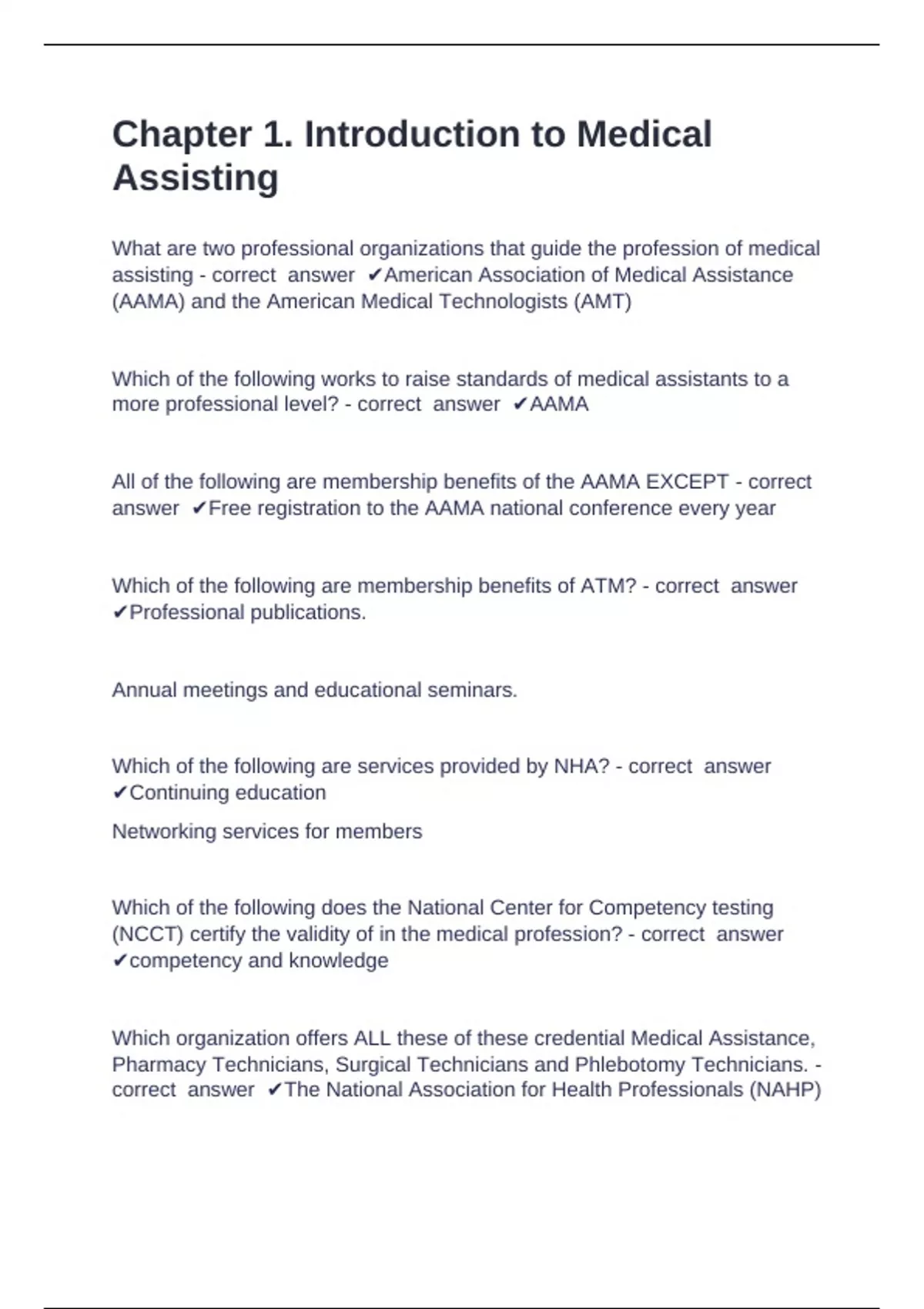 assisting - correct answer ✔American Association of Medical Assistance