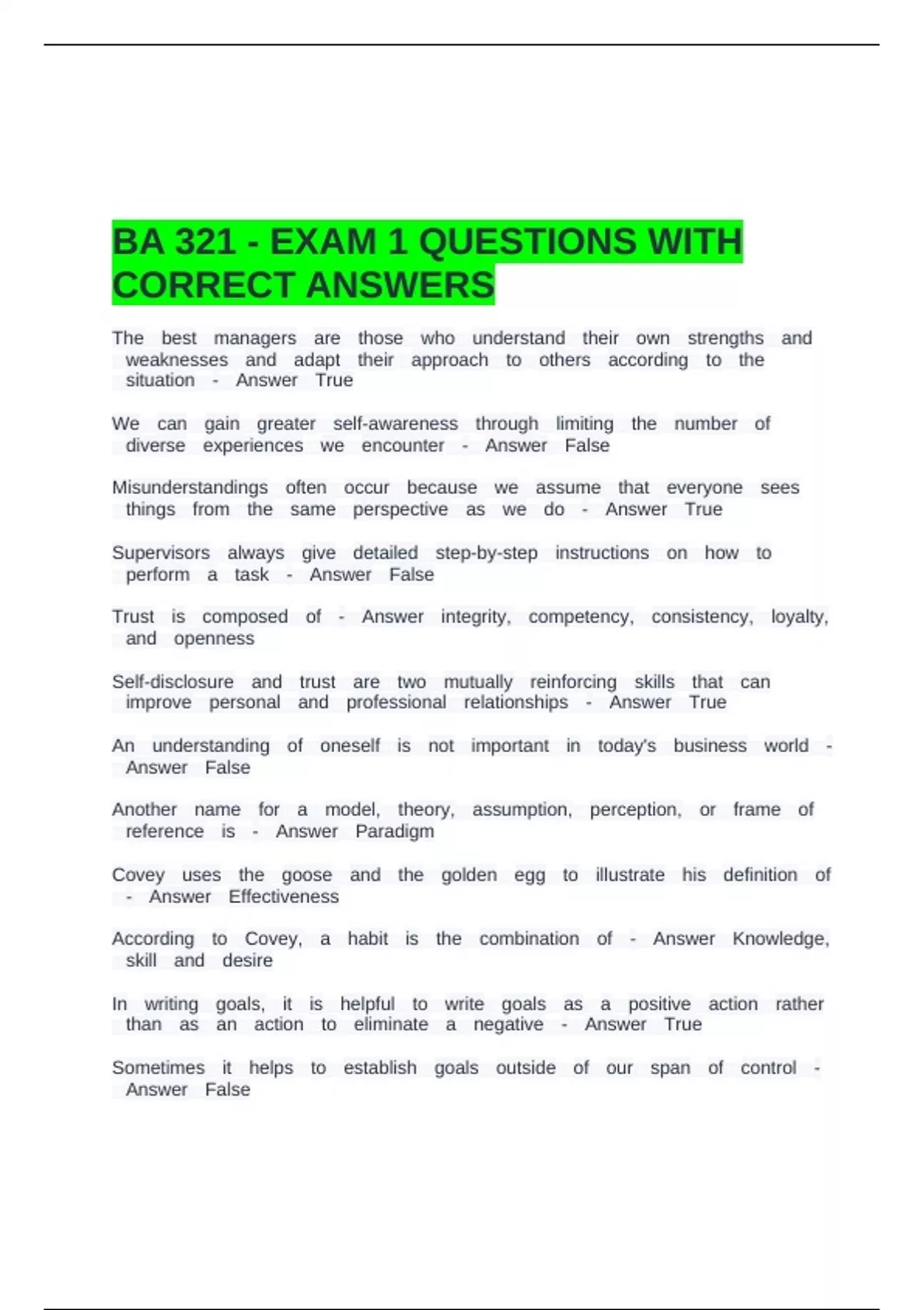 CORRECT ANSWERS