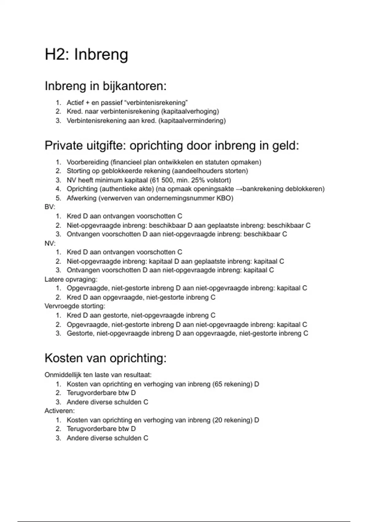2. Kosten van oprichting en verhoging van inbreng