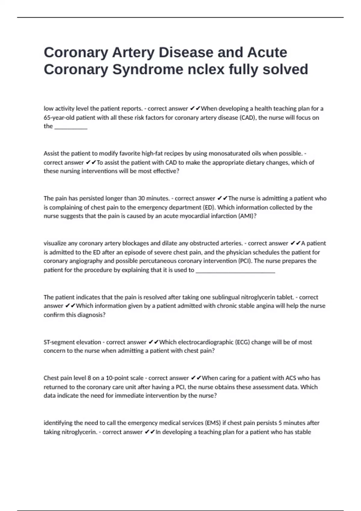 Coronary Syndrome nclex fully solved