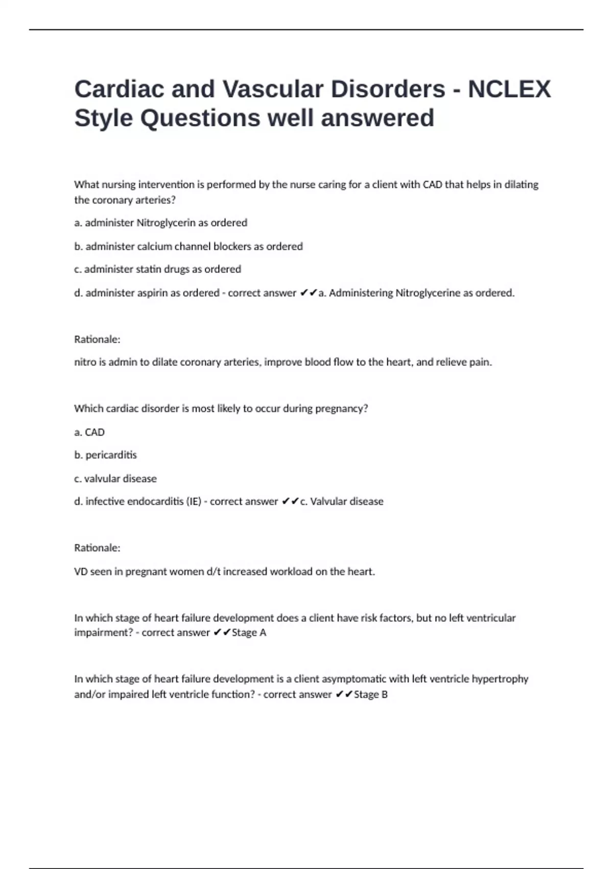 and/or impaired left ventricle function? - correct answer ✔✔Stage B