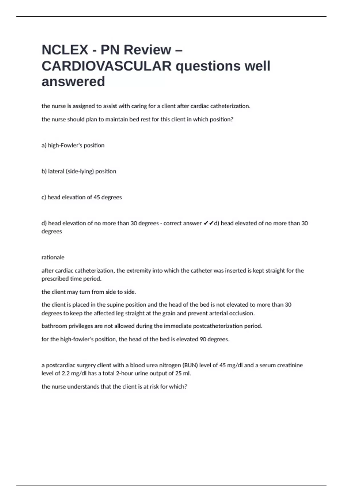 CARDIOVASCULAR questions well