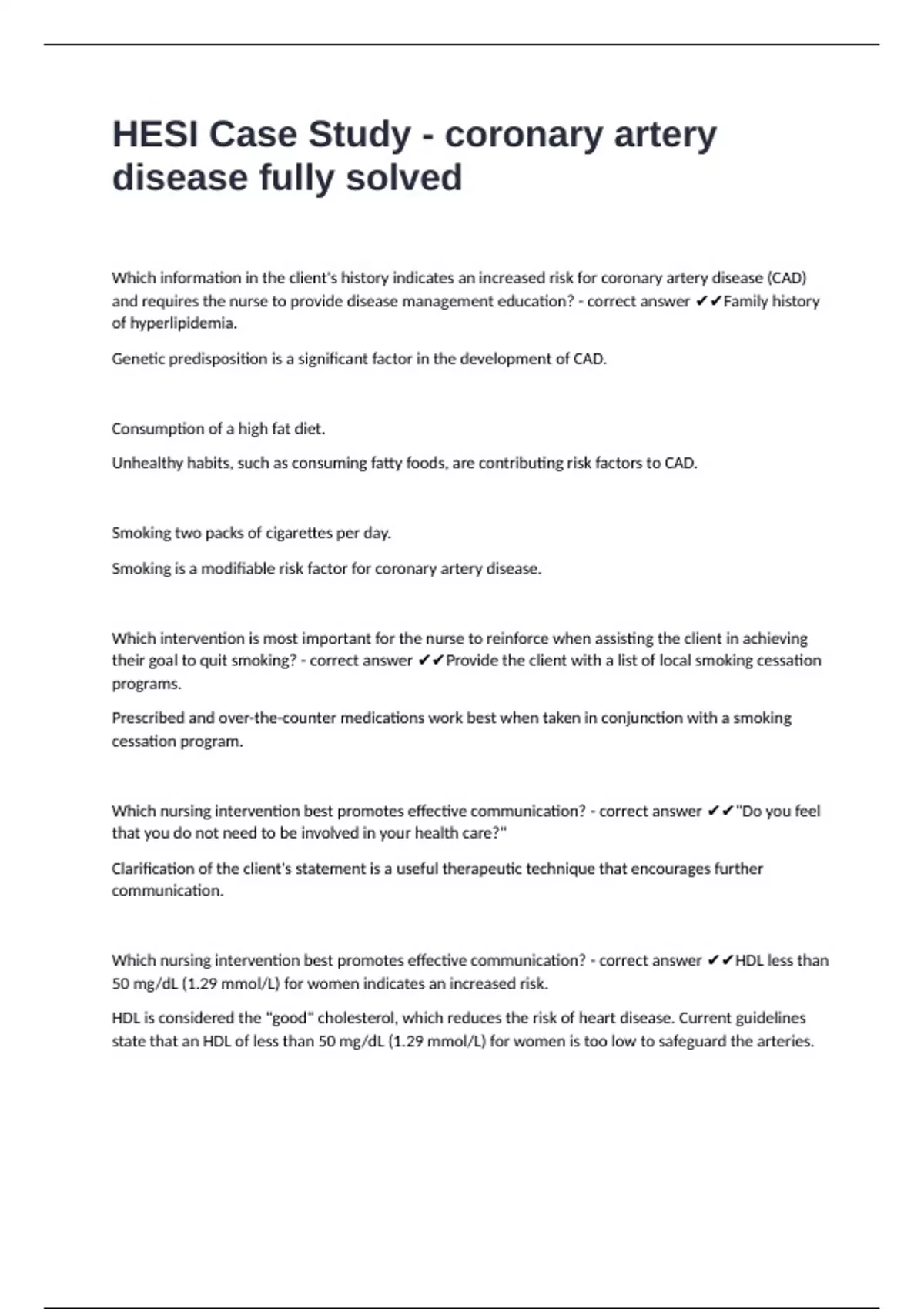 Which nursing intervention best promotes effective communication? - correct answer ✔✔HDL less than