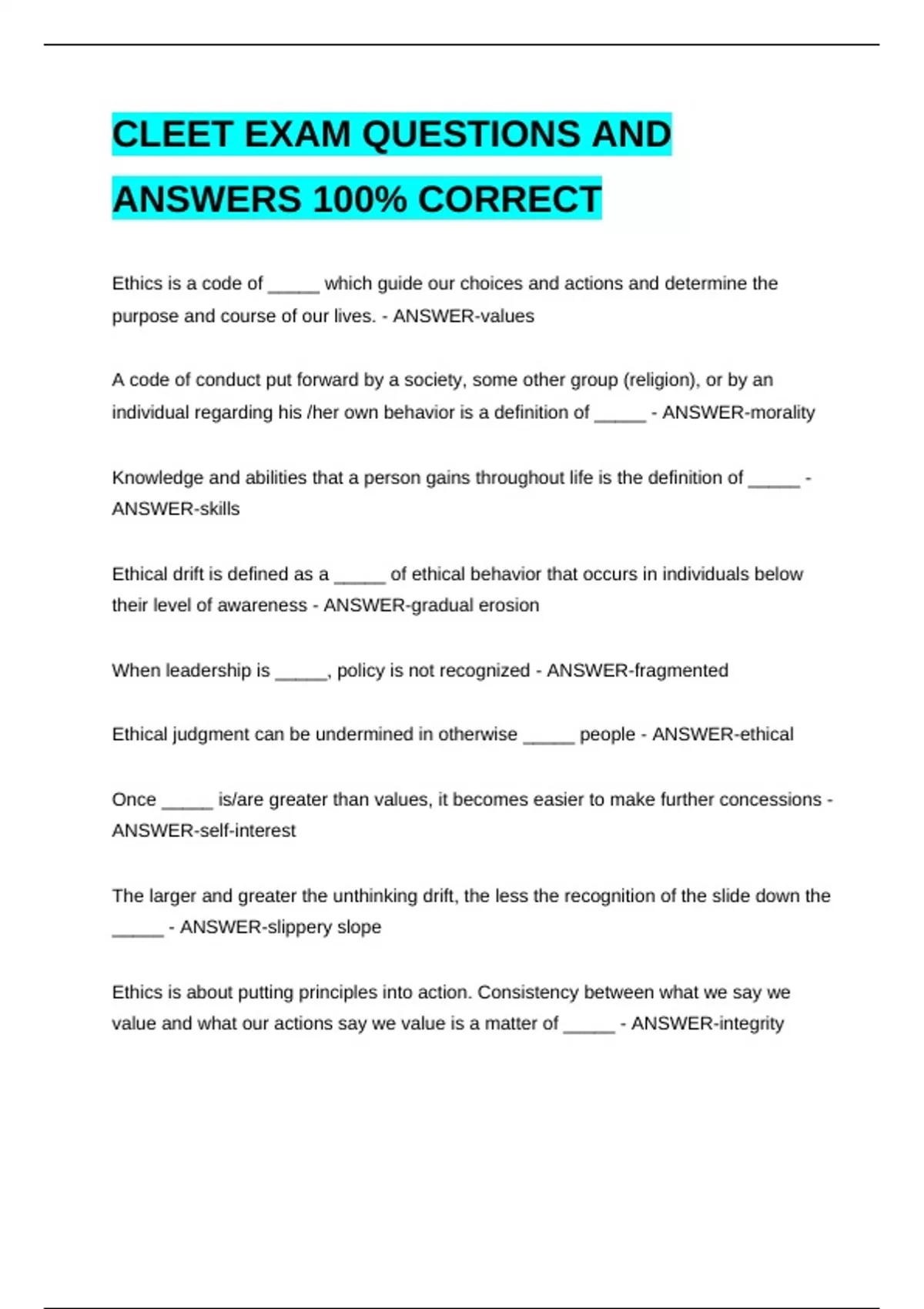 ANSWERS 100% CORRECT