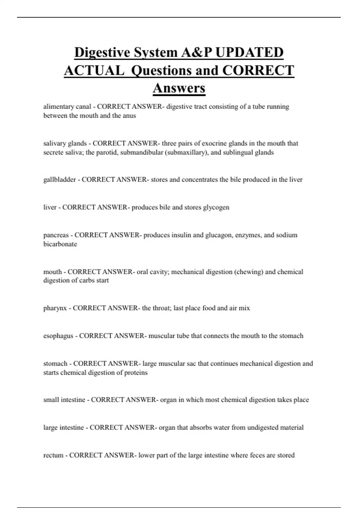 ACTUAL Questions and CORRECT
