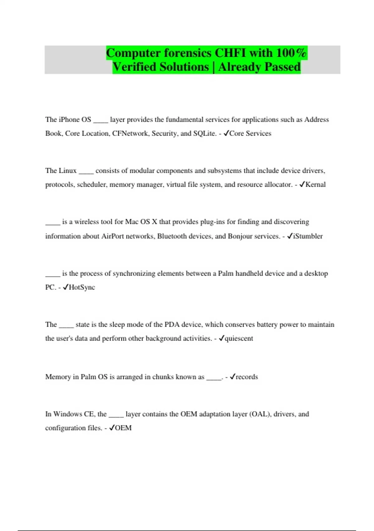 Memory in Palm OS is arranged in chunks known as ____. - ✔records