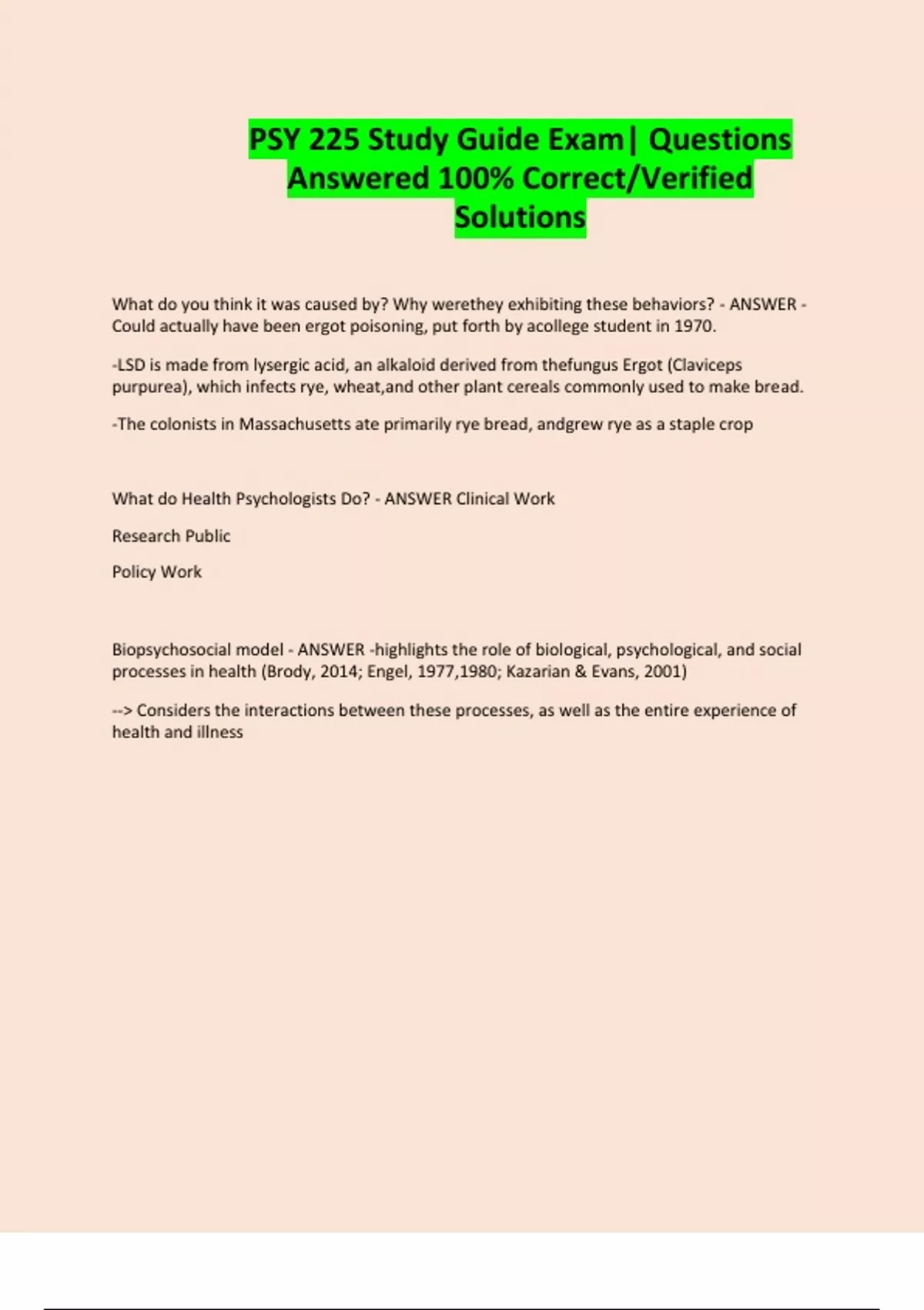 PSY 225 Study Guide Exam| Questions