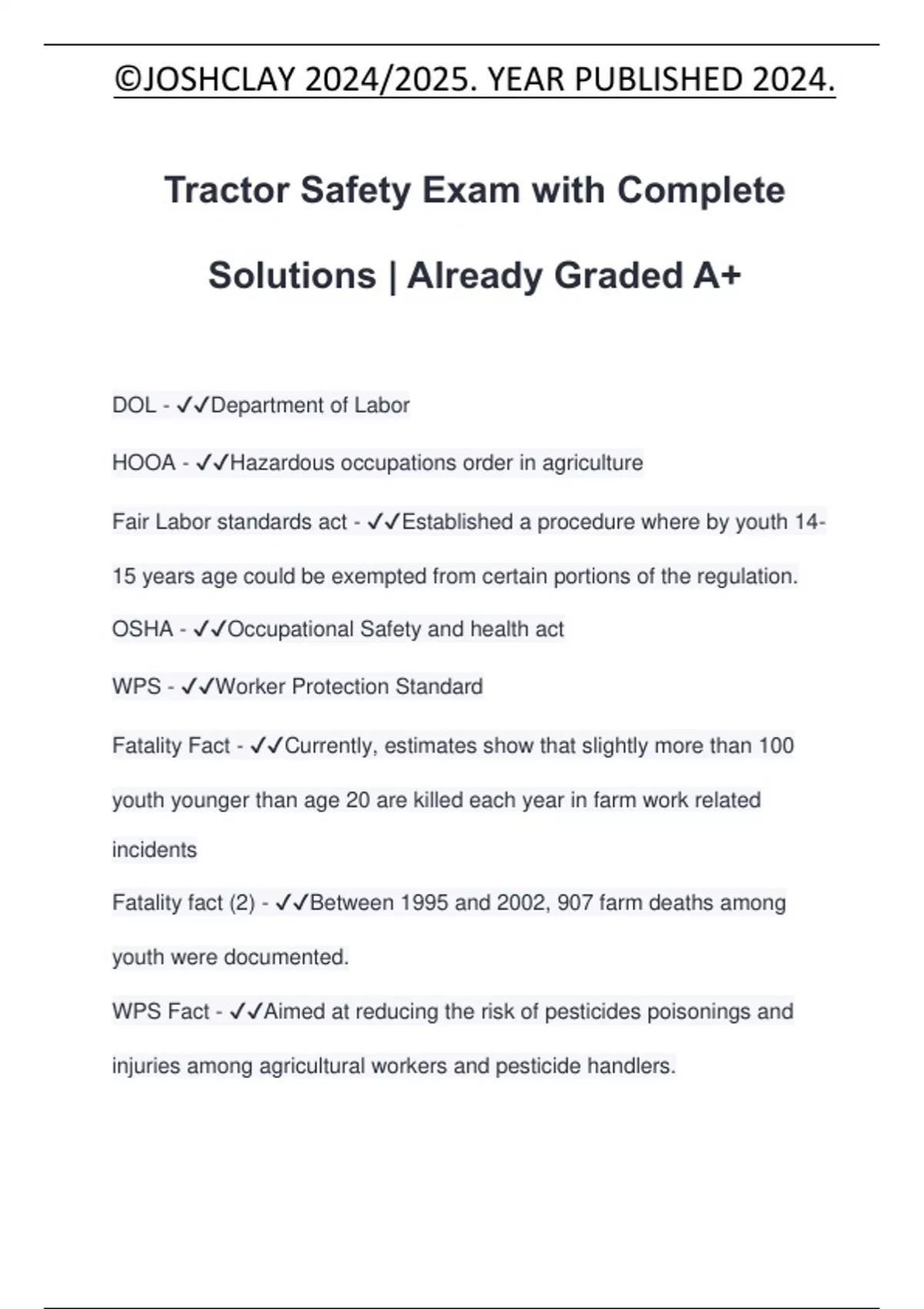 Tractor Safety Exam with Complete