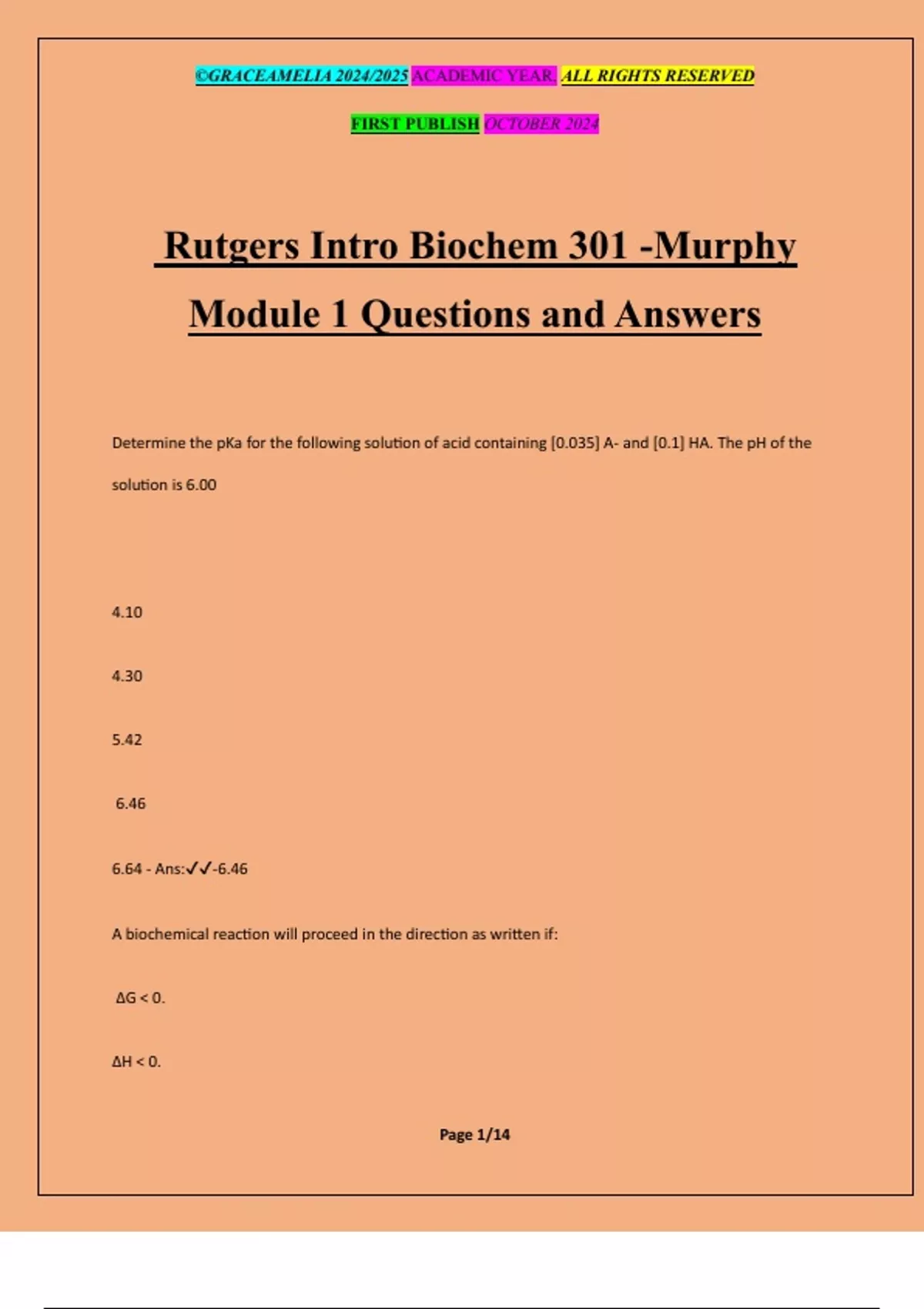 Determine the pKa for the following solution of acid containing [0.035] A- and [0.1] HA. The pH of the