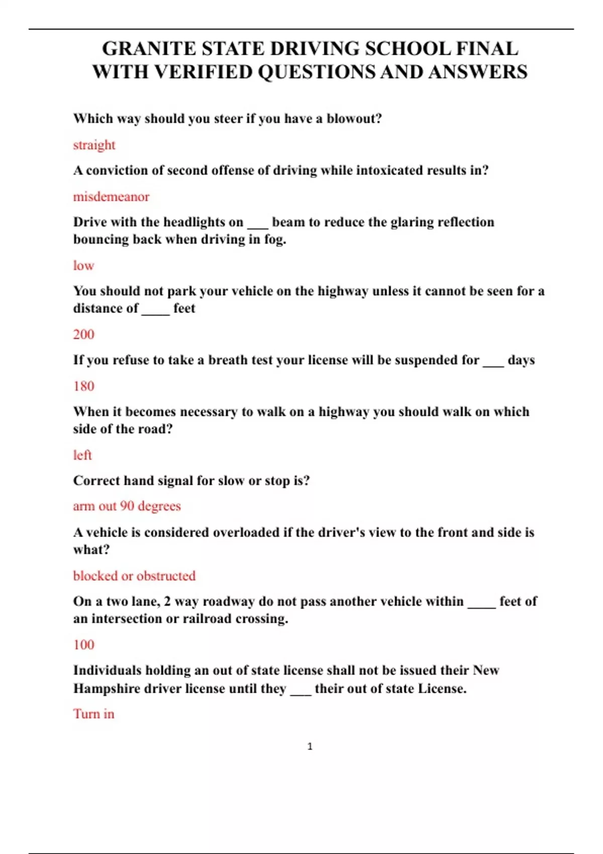 GRANITE STATE DRIVING SCHOOL FINAL WITH VERIFIED QUESTIONS AND ANSWERS GRANITE STATE DRIVING SCHOOL FINAL WITH VERIFIED QUESTIONS AND ANSWERS GRANITE STATE DRIVING SCHOOL FINAL WITH VERIFIED QUESTIONS AND ANSWERS GRANITE STATE DRIVING SCHOOL FINAL WITH VERIFIED QUESTIONS AND ANSWERS