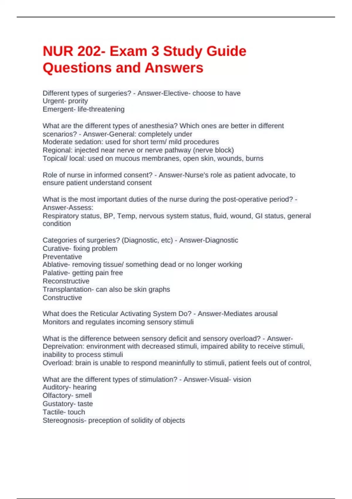 Different types of surgeries? - Answer-Elective- choose to have