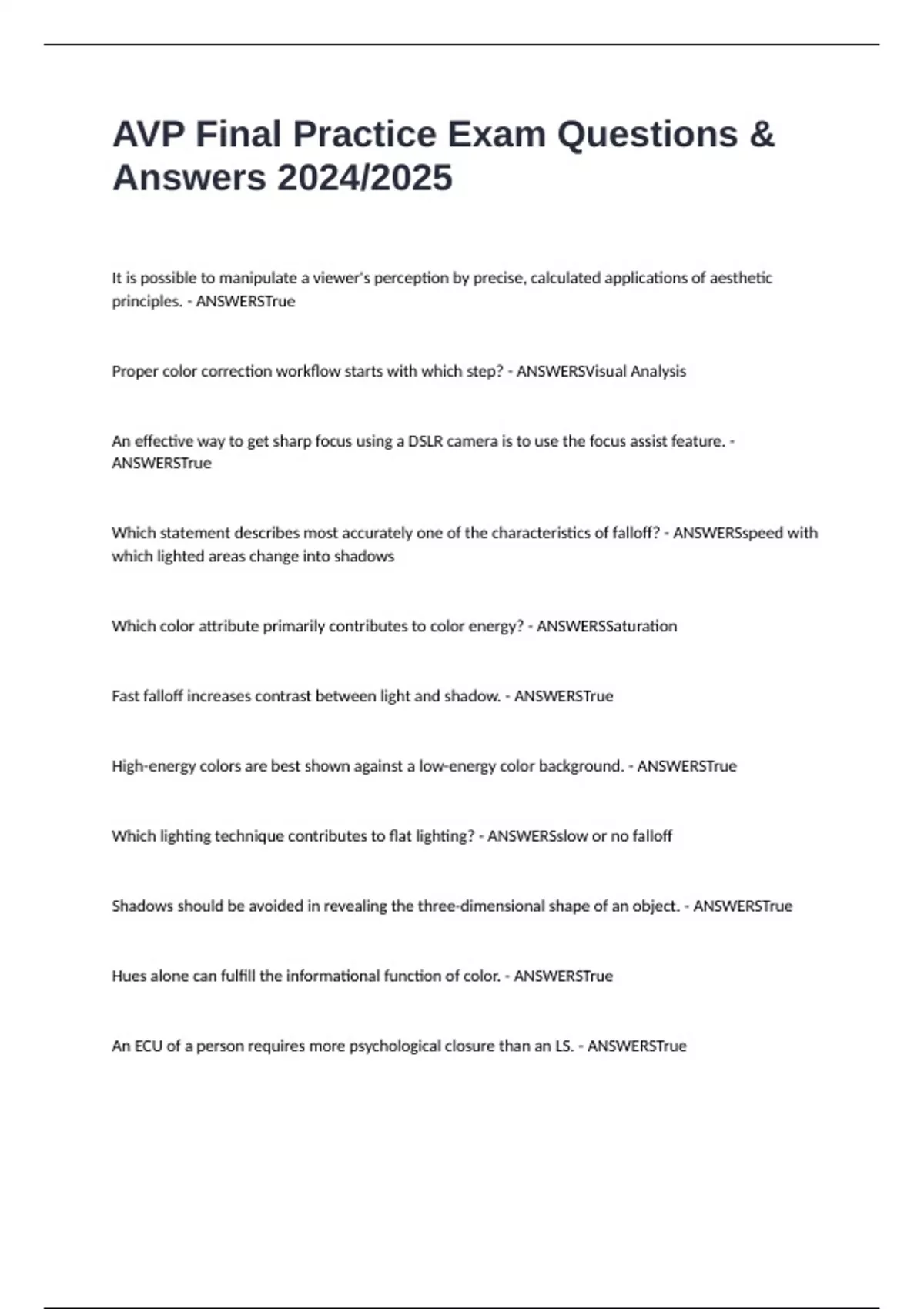 Shadows should be avoided in revealing the three-dimensional shape of an object. - ANSWERSTrue
