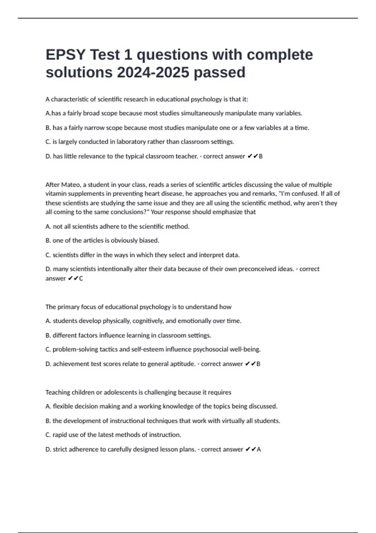 D. has little relevance to the typical classroom teacher. - correct answer ✔✔B