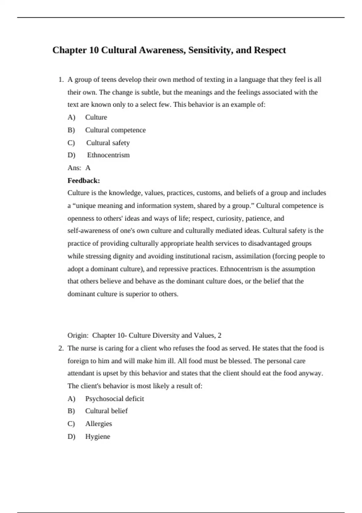 , Origin: Chapter 10- Culture Diversity and Values, 3
