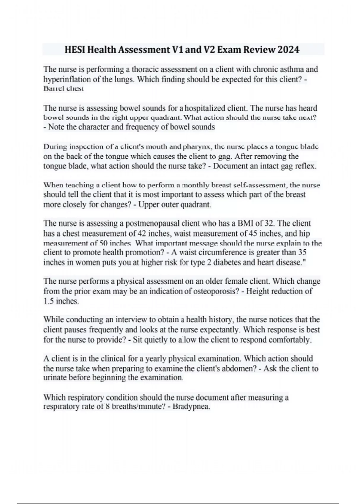 HESI Health Assessment V1 and V2 Exam Review 2024