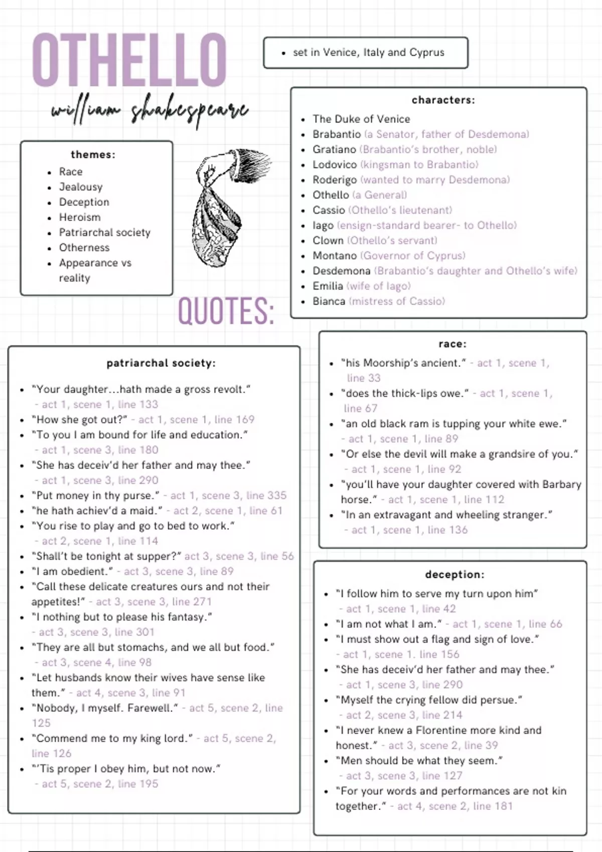 “Your daughter...hath made a gross revolt.” “does the thick-lips owe.” - act 1, scene 1,