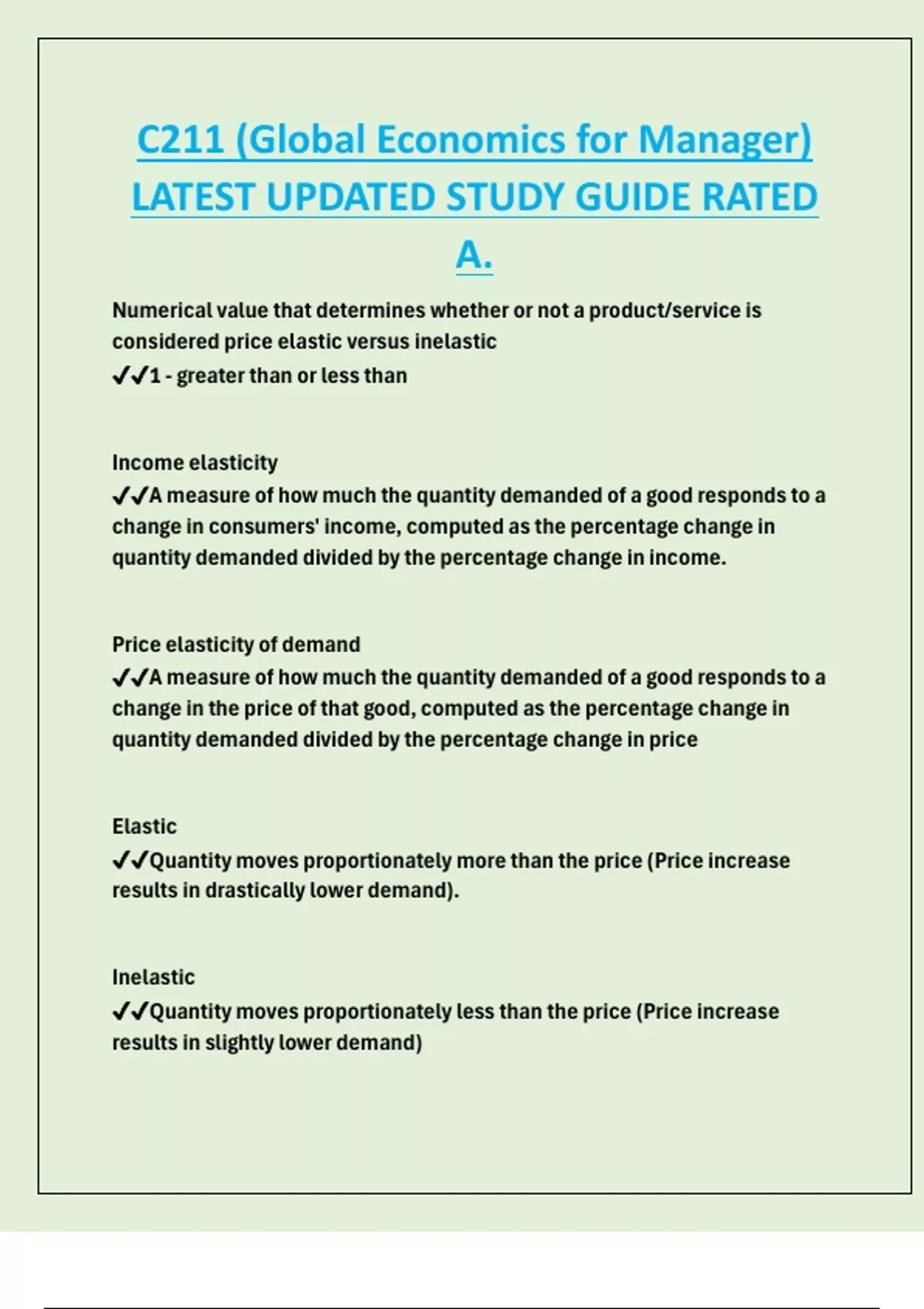 ✔✔(1) Price elasticity of demand - % chg in Q D / % chg in P