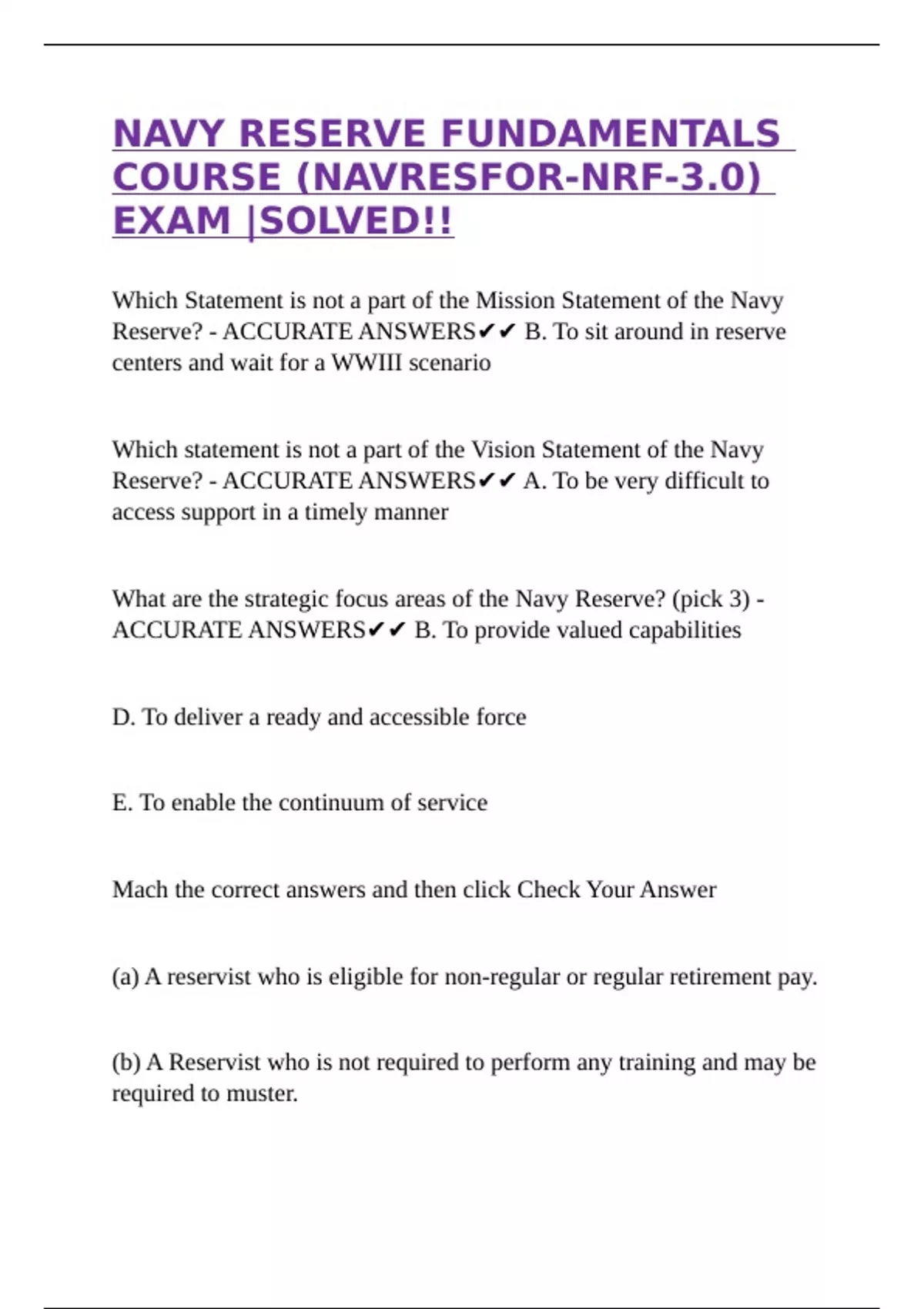 ACCURATE ANSWERS✔✔ B. To provide valued capabilities