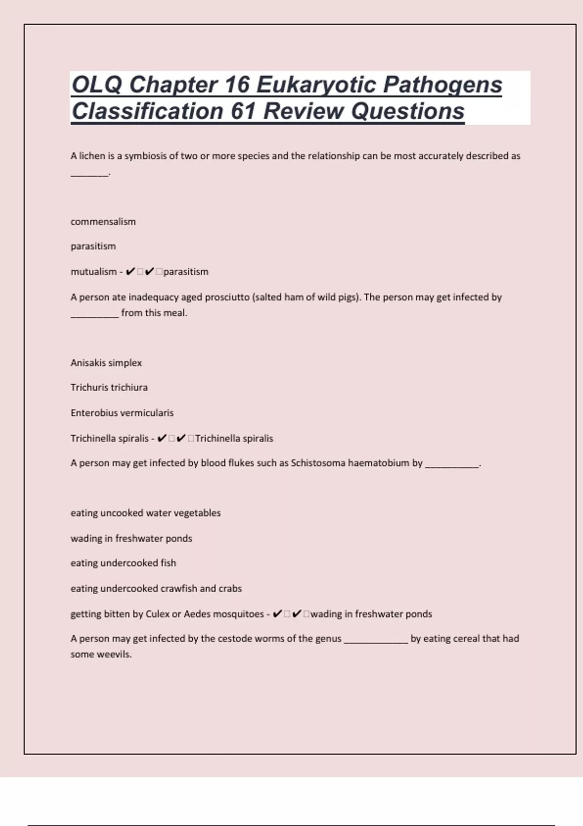Trichinella spiralis - ✔ ✔ Trichinella spiralis