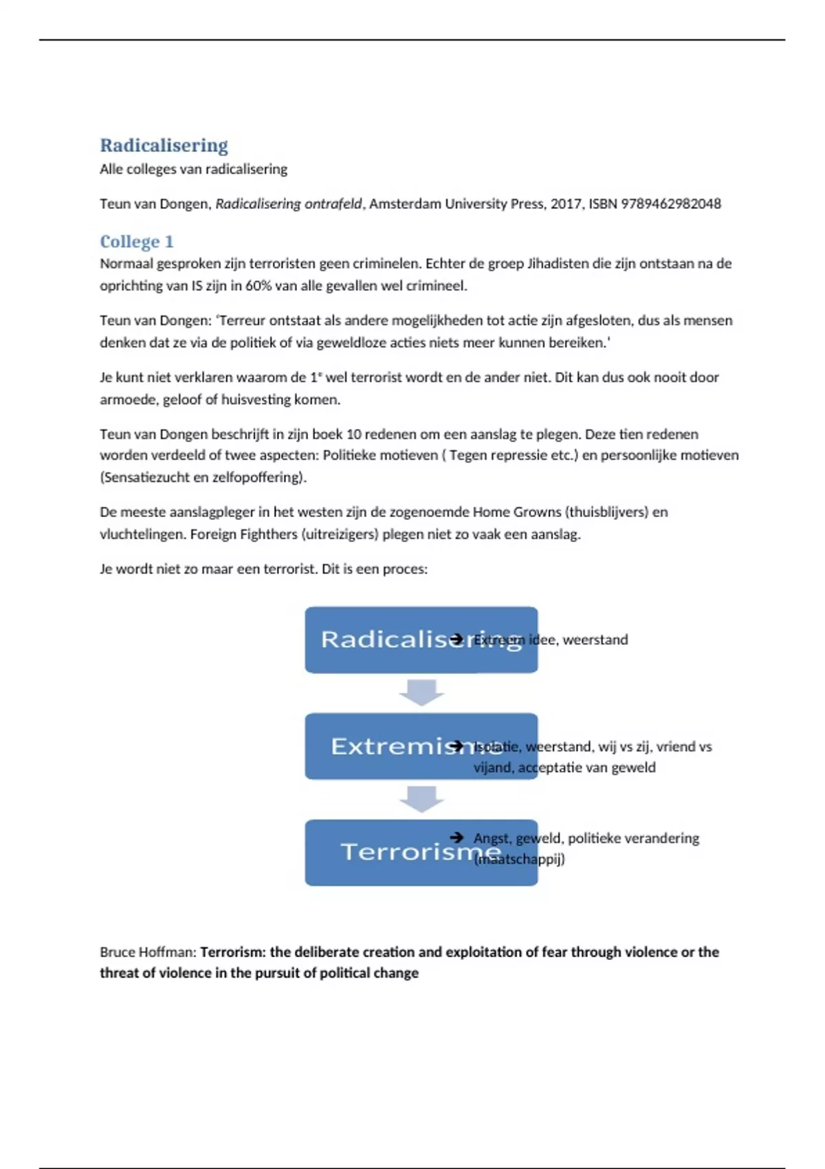 Dit document bevat een samenvatting van alle colleges die gegeven zijn over radicalisering.