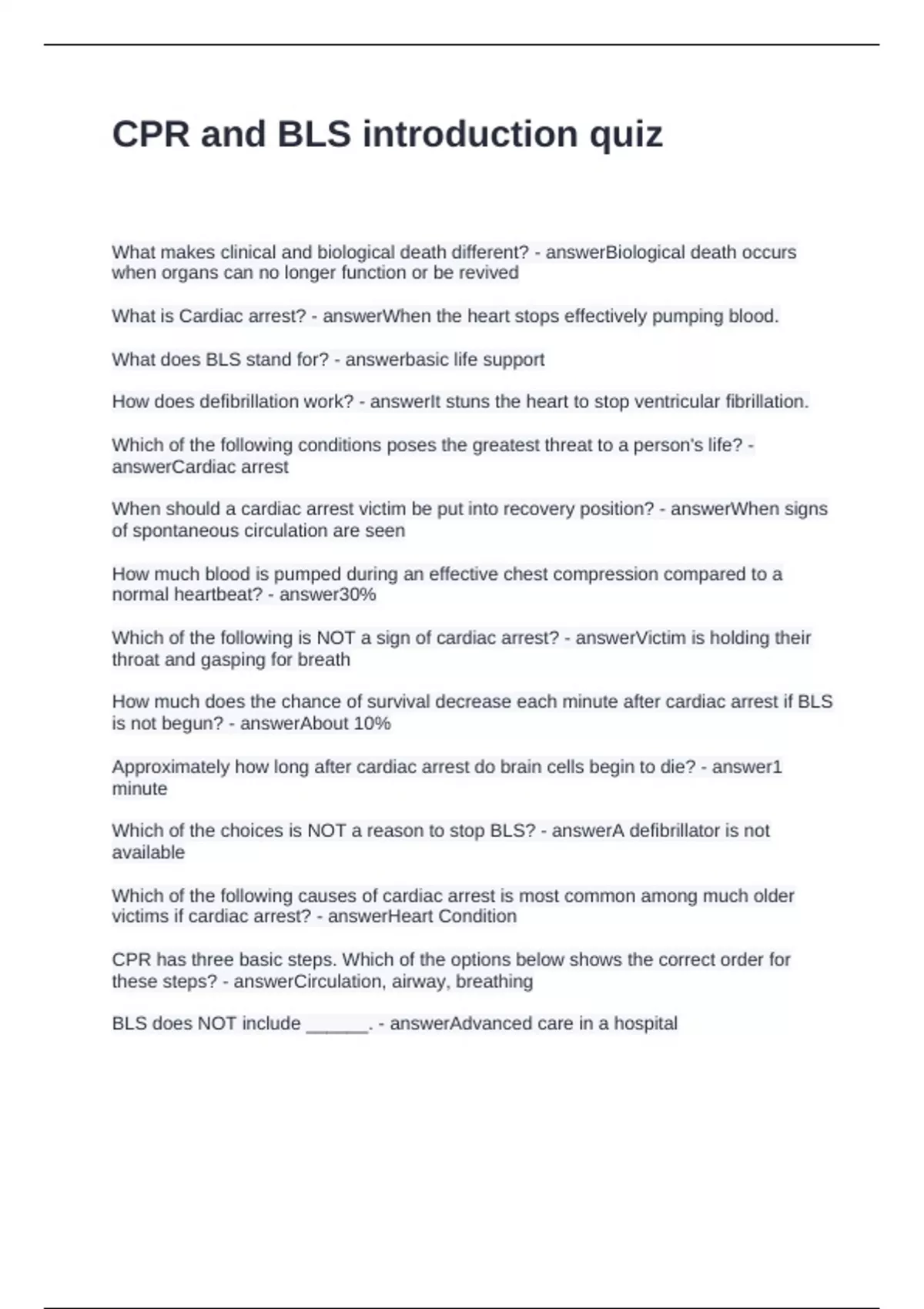 CPR and BLS introduction quiz