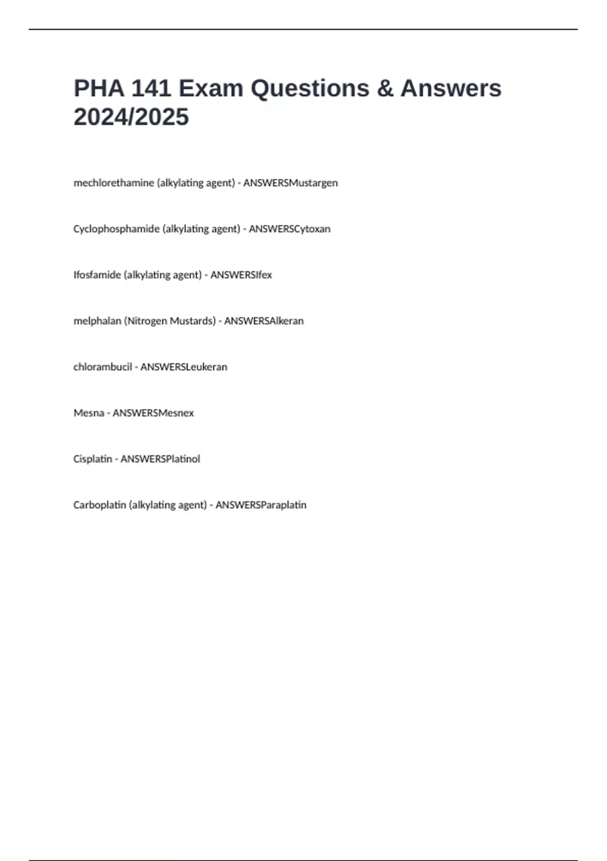 PHA 141 Exam Questions & Answers