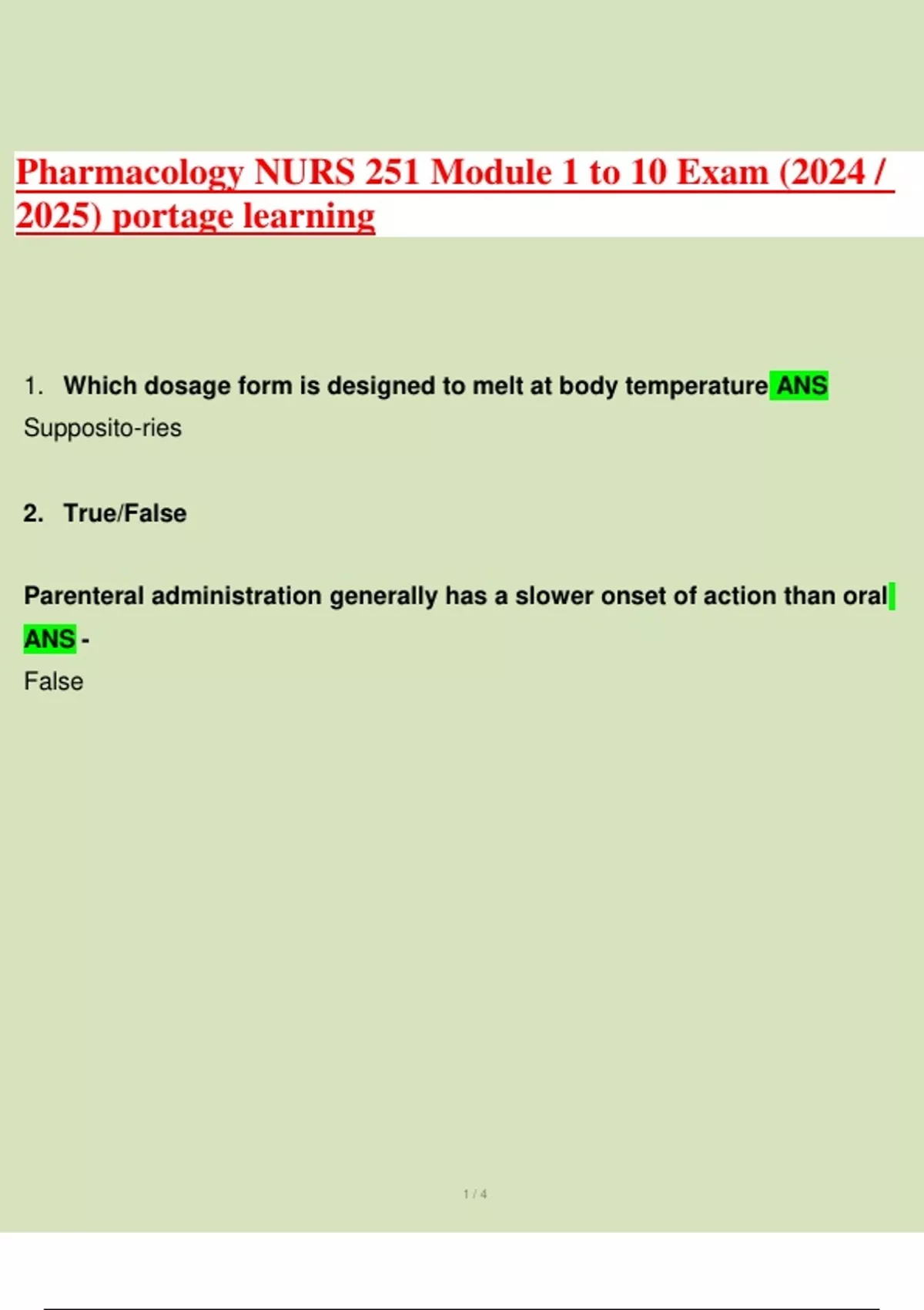 Pharmacology NURS 251 Module 1 to 10 Exam (2024 /