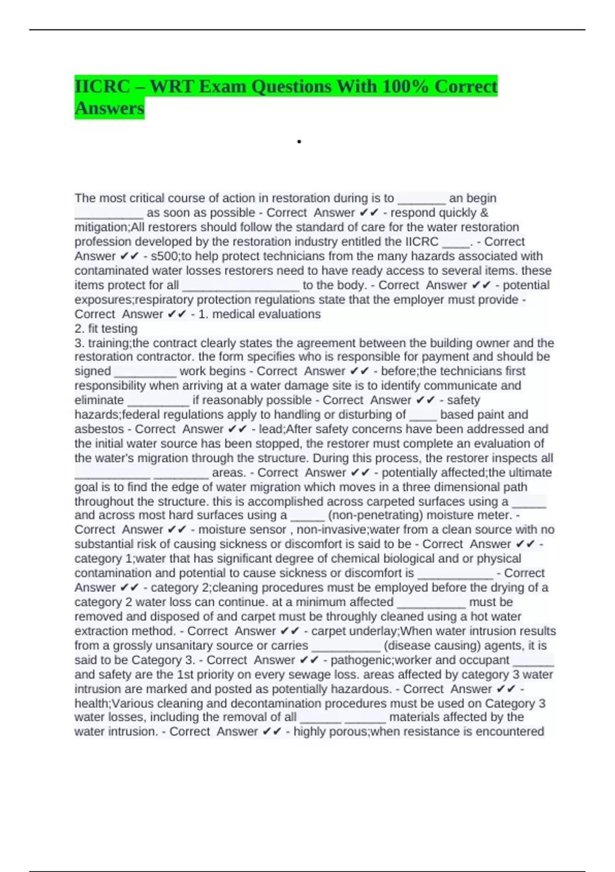 _______ of water. - Correct Answer ✔✔ - category;pre-existing conditions should be