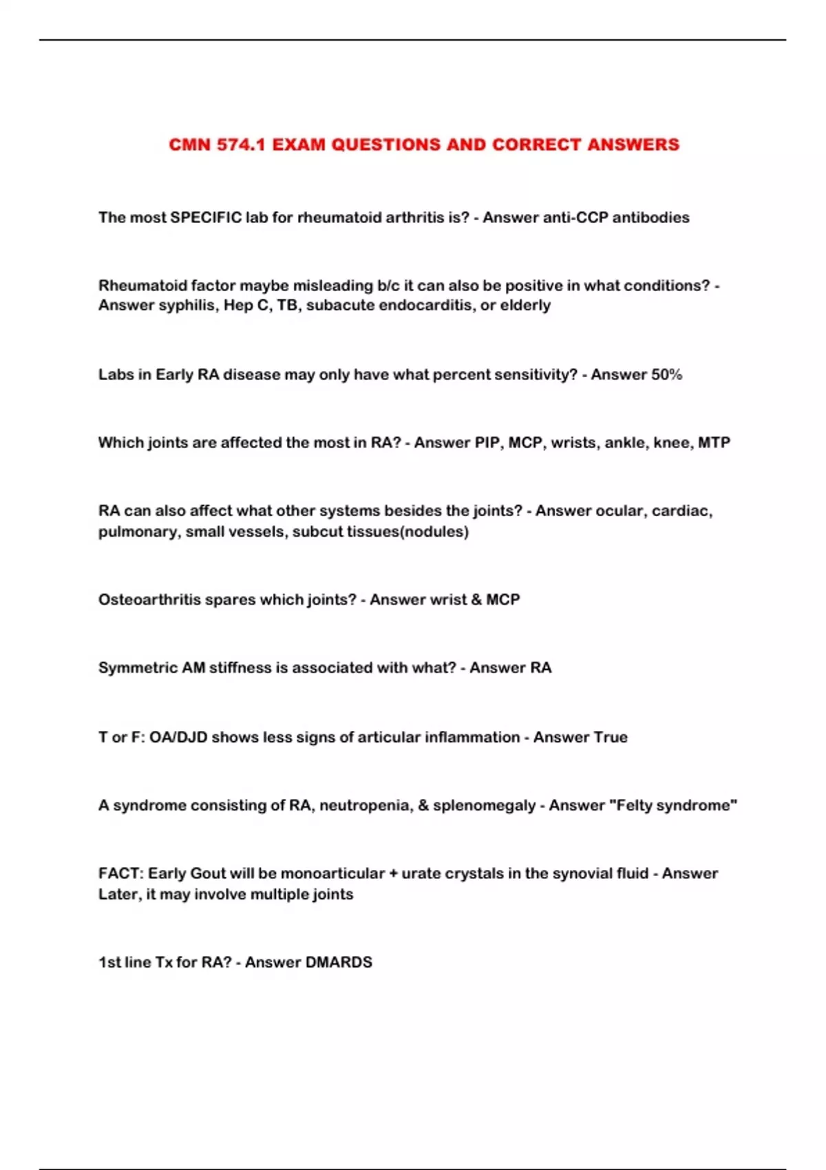 CMN 574.1 EXAM QUESTIONS AND CORRECT ANSWERS