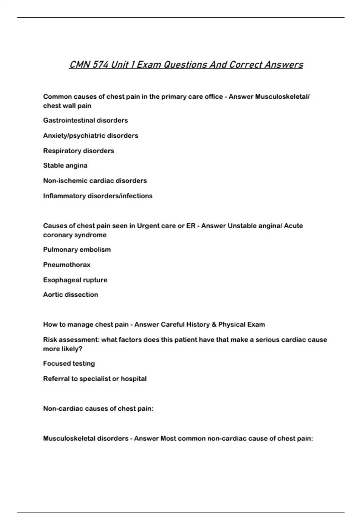 Musculoskeletal disorders - Answer Most common non-cardiac cause of chest pain: