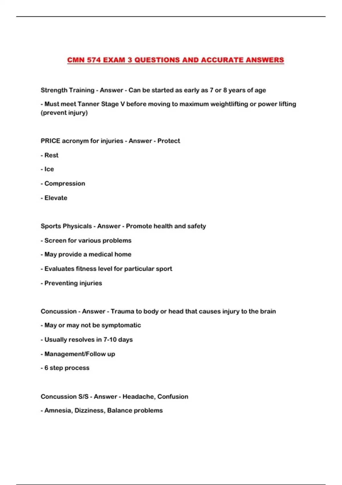 Sports Physicals - Answer - Promote health and safety