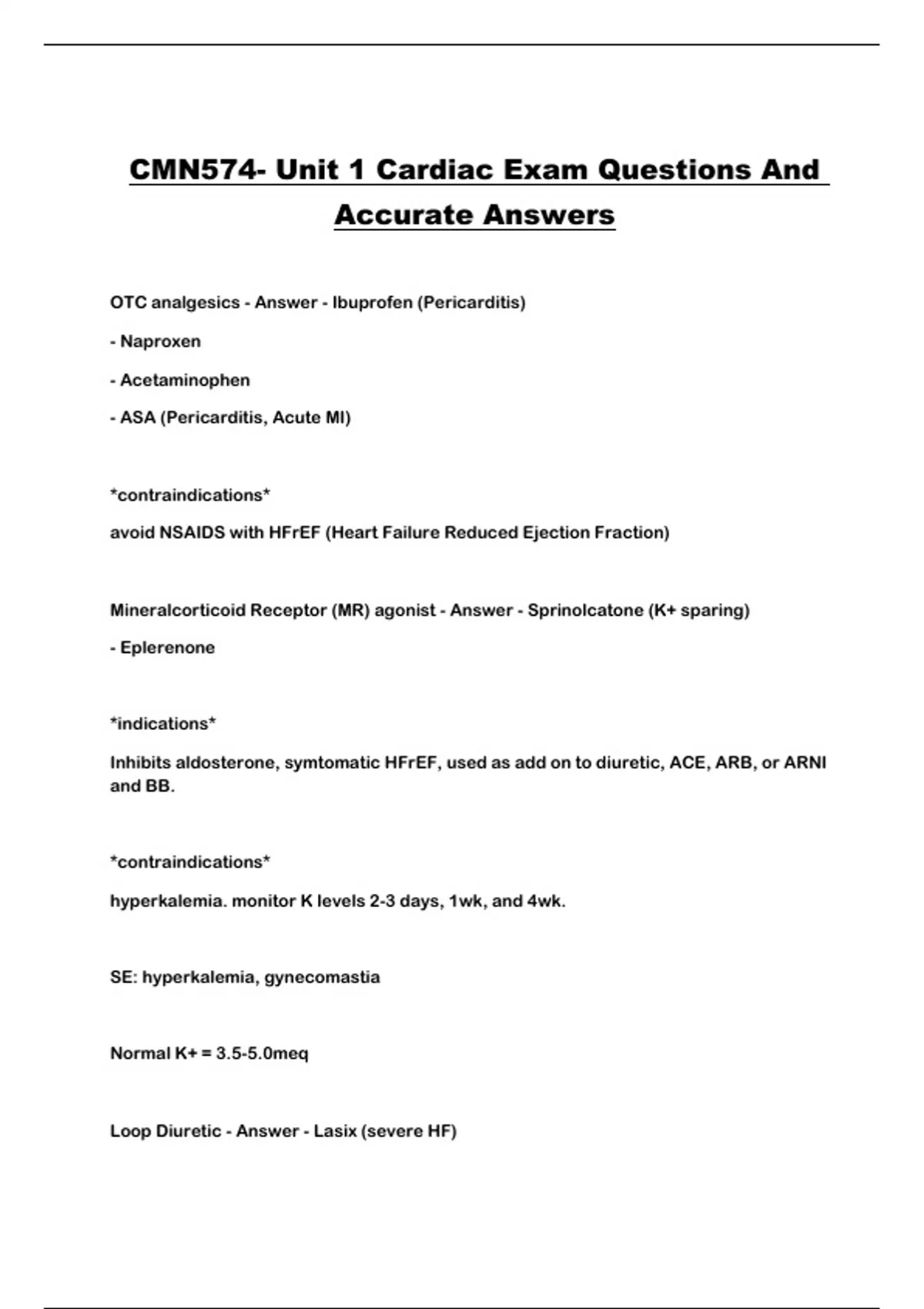 CMN574- Unit 1 Cardiac Exam Questions And