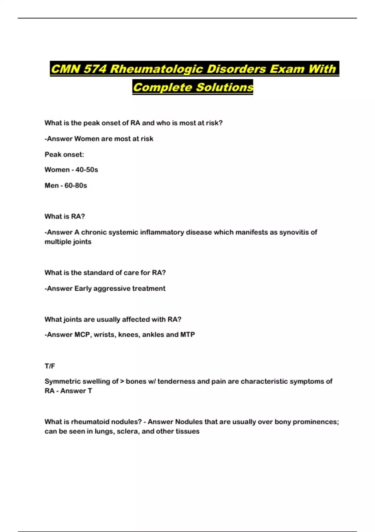 What is rheumatoid nodules? - Answer Nodules that are usually over bony prominences;