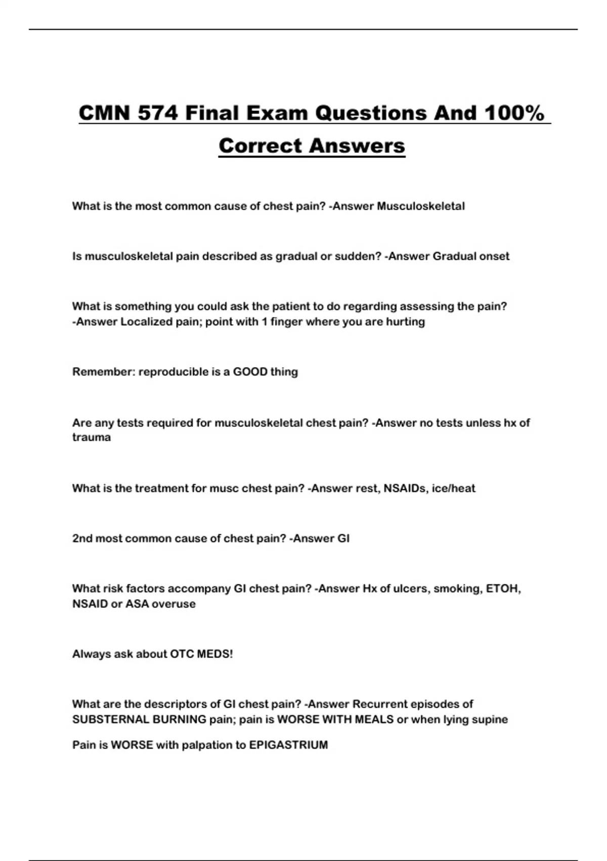What is the most common cause of chest pain? -Answer Musculoskeletal