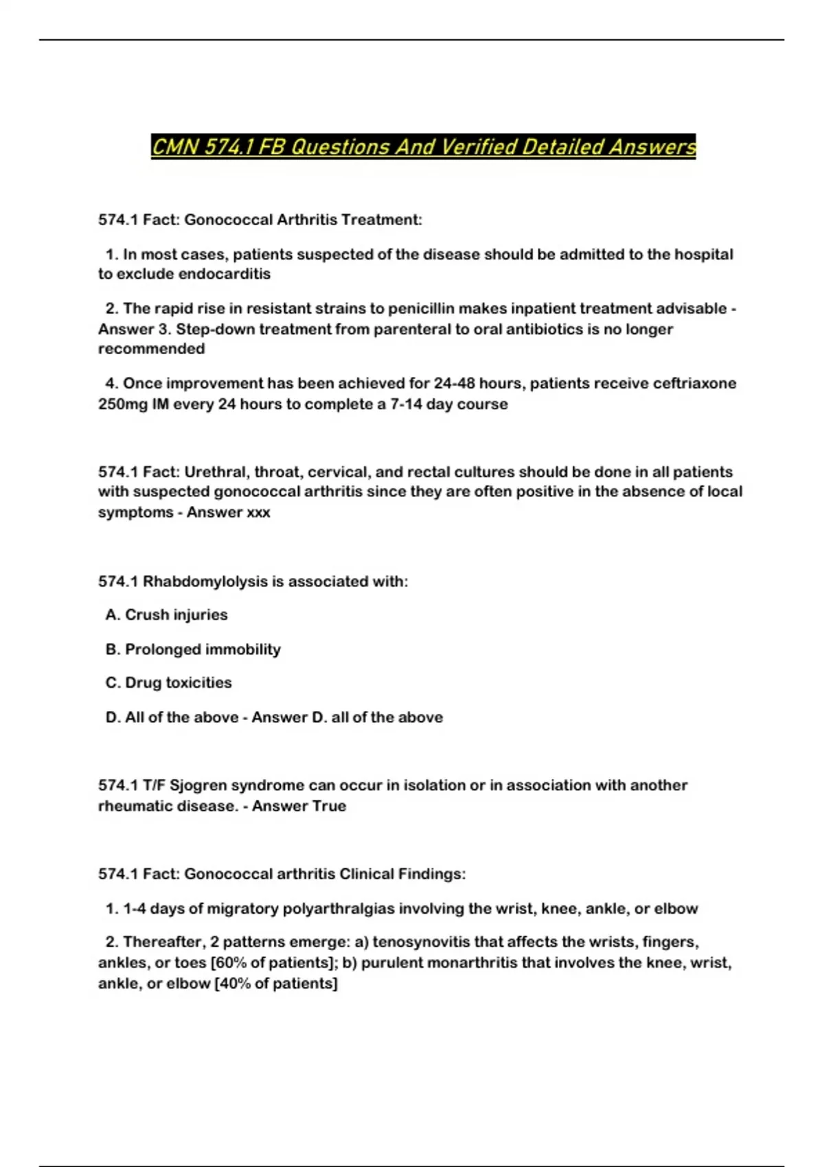 574.1 Fact: Gonococcal Arthritis Treatment: