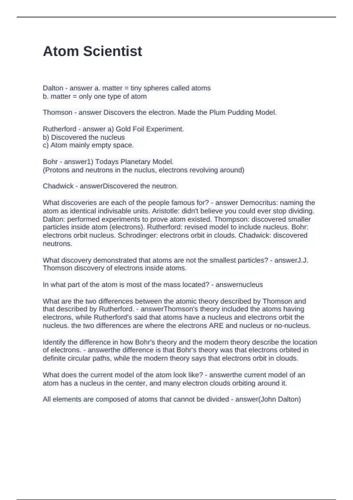 Dalton: performed experiments to prove atom existed. Thompson: discovered smaller