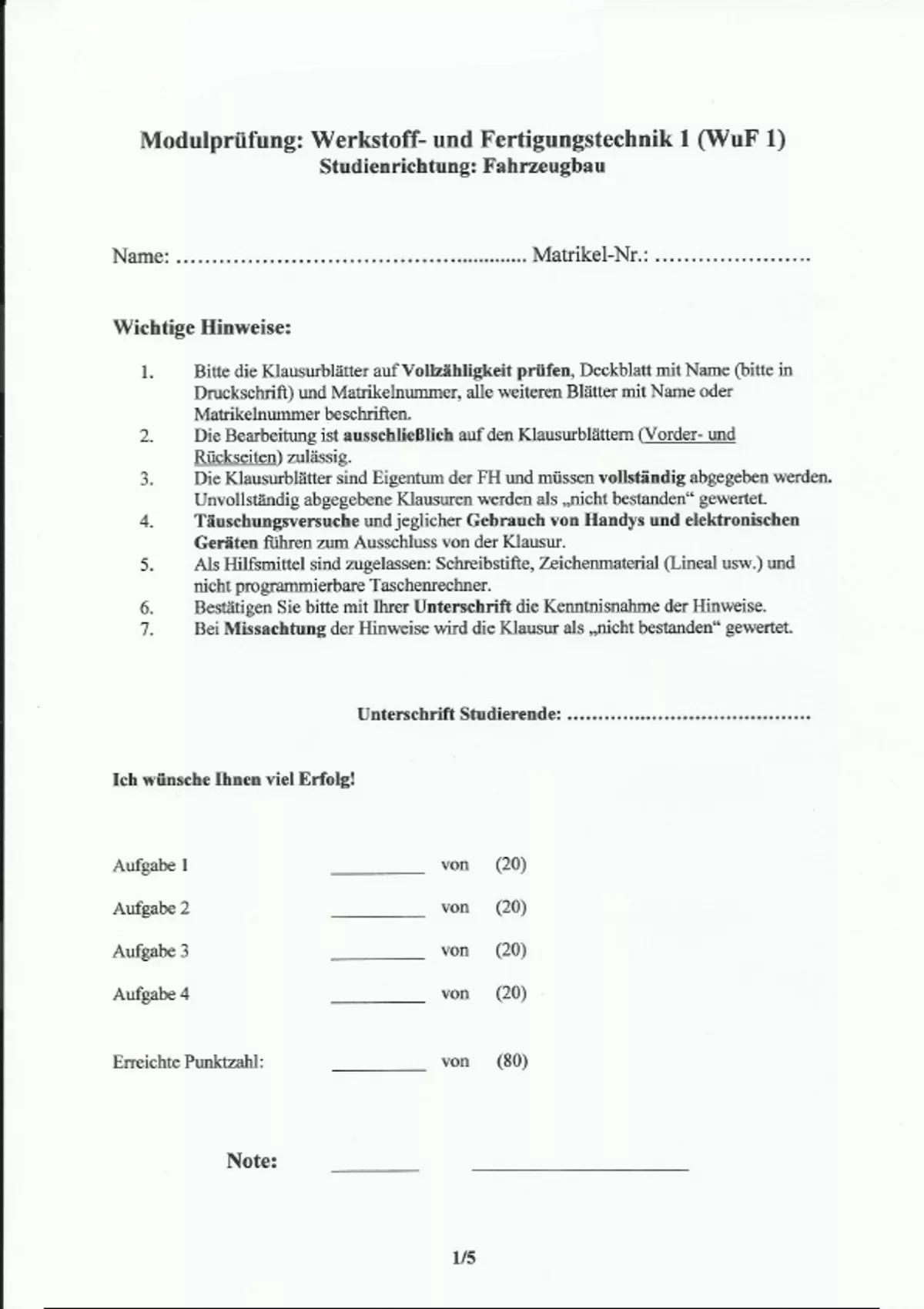 Dieses Dokument bearbeitet Themen und Fragen im Bereich der Werkstoffkunde in der Fahrzeugentwicklung. Die Fragen beziehen sich dabei auf das Skript und die Themen aus dem Modulhandbuch.