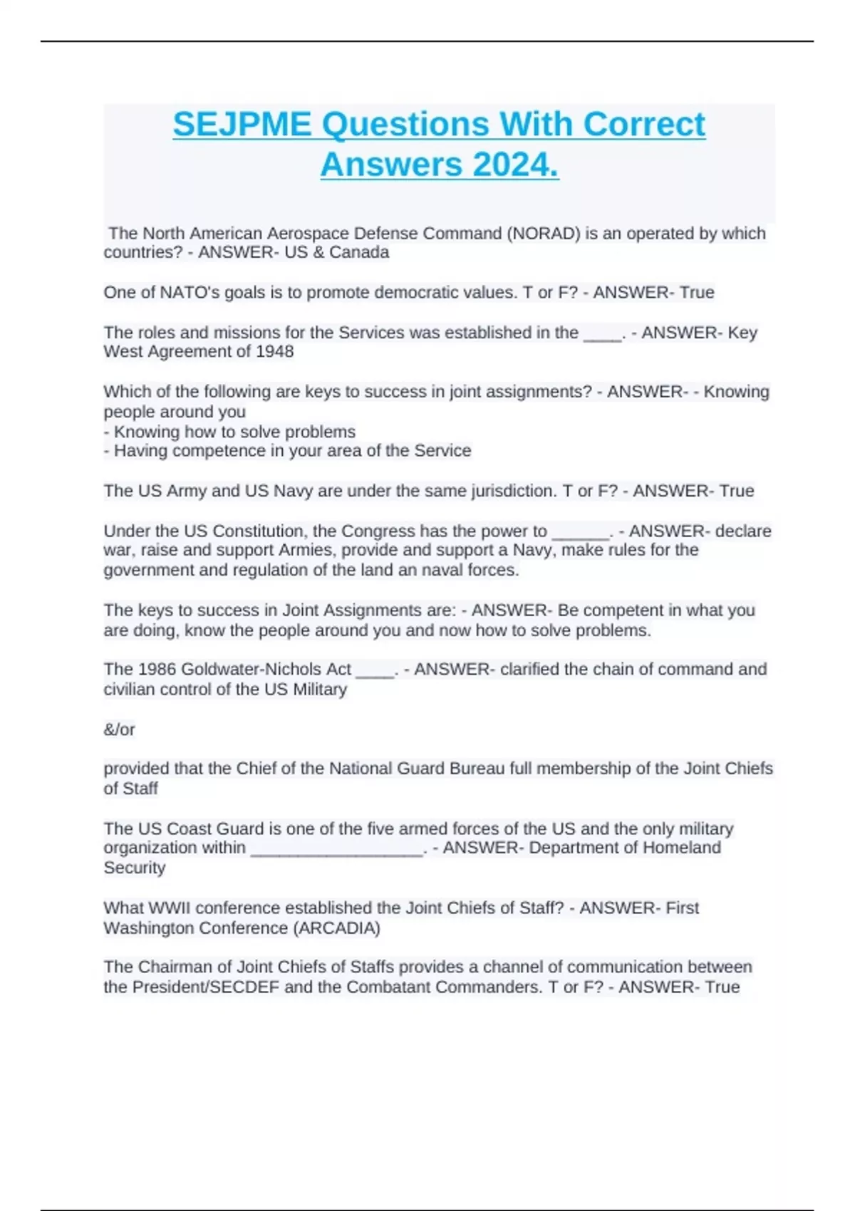 Which of the following are keys to success in joint assignments? - ANSWER- - Knowing