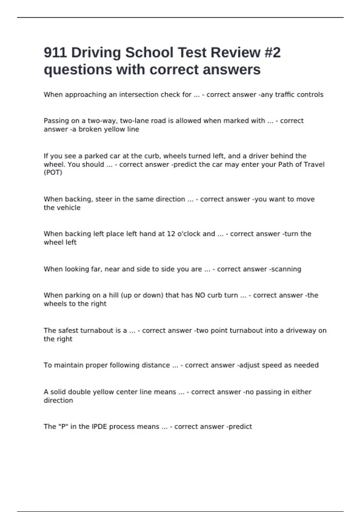 911 Driving School Test Review #2