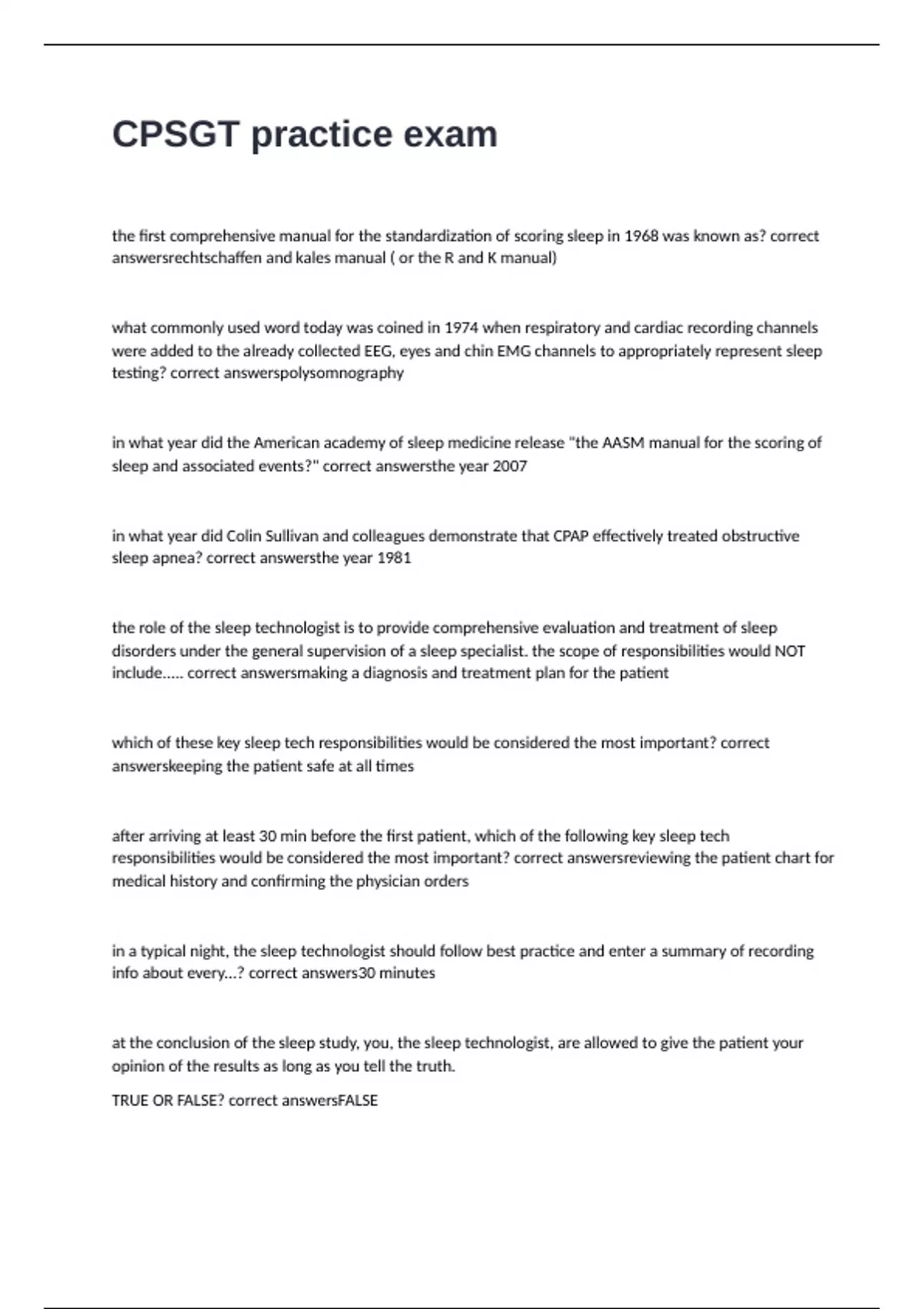 which of the following associations provide sleep technologist credentialing, such as the CPSGT and