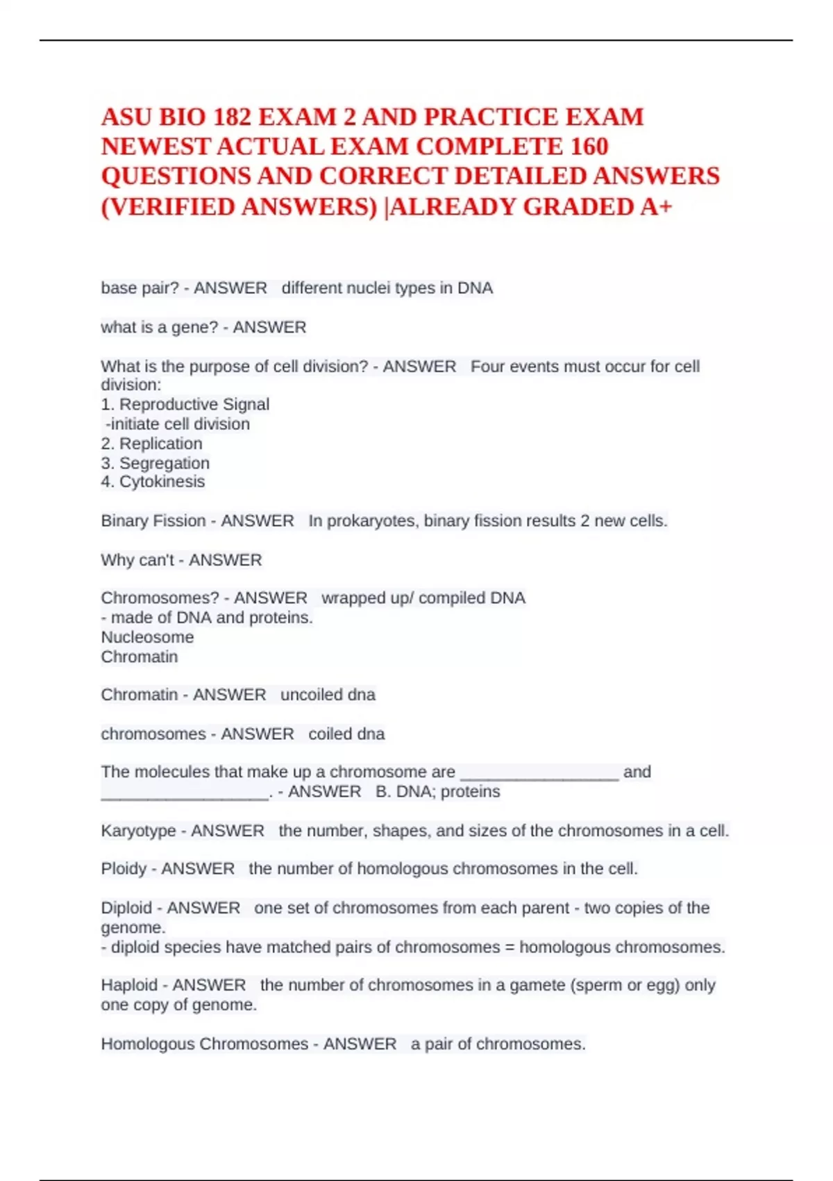 ASU BIO 182 EXAM 2 AND PRACTICE EXAM