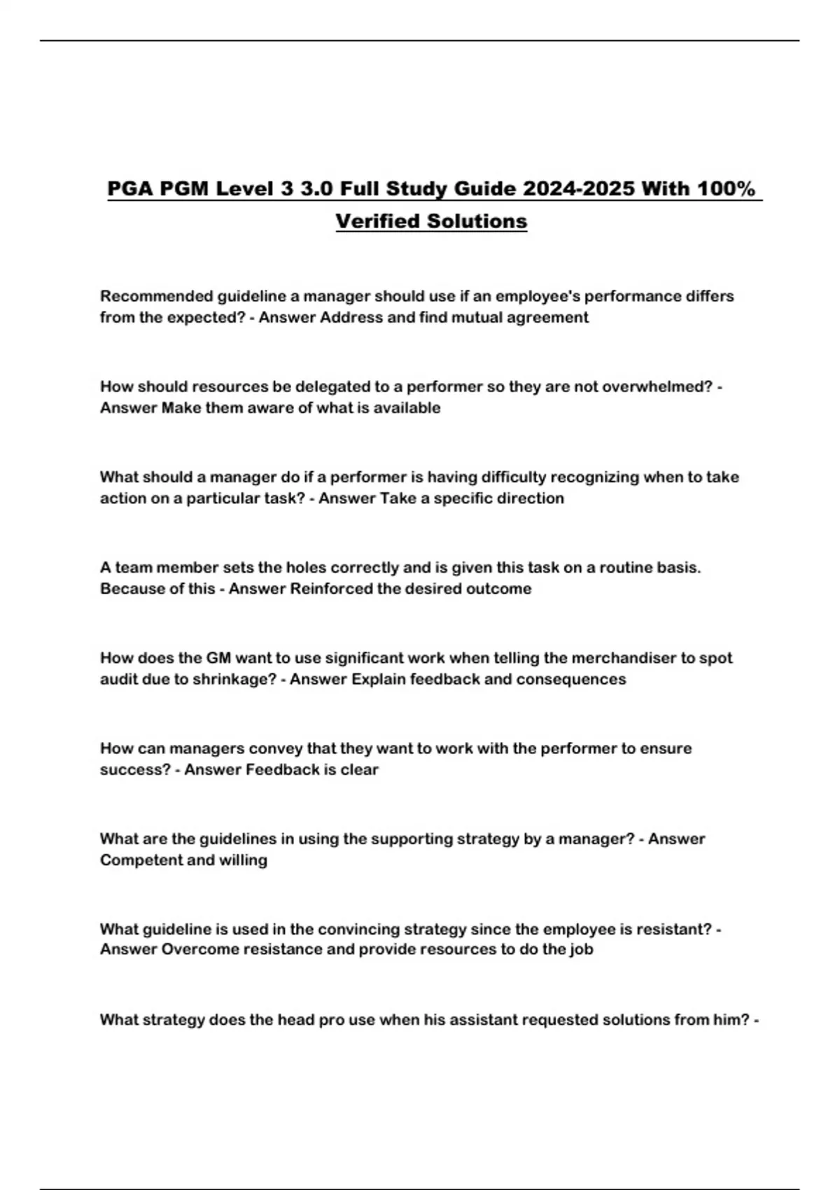 PGA PGM Level 3 3.0 Full Study Guide With 100% Verified Solutions...